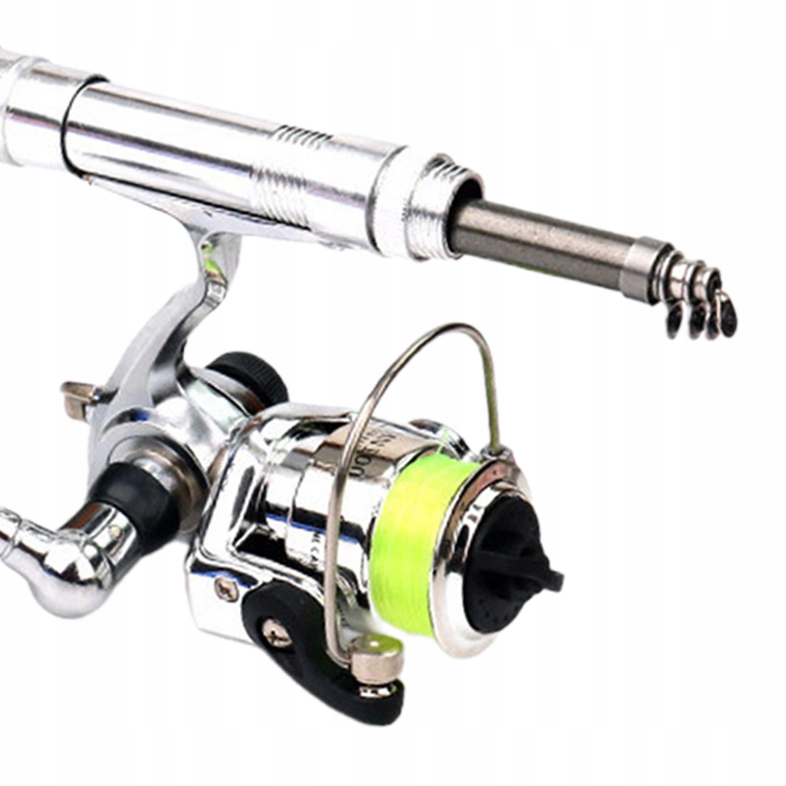 [Деталі продукту]: розміри вудки 20,5*1,5 см у зібраному вигляді виготовлені зі скловолокна; пакет містить 1 вудку та 1 котушку (з волосінню).