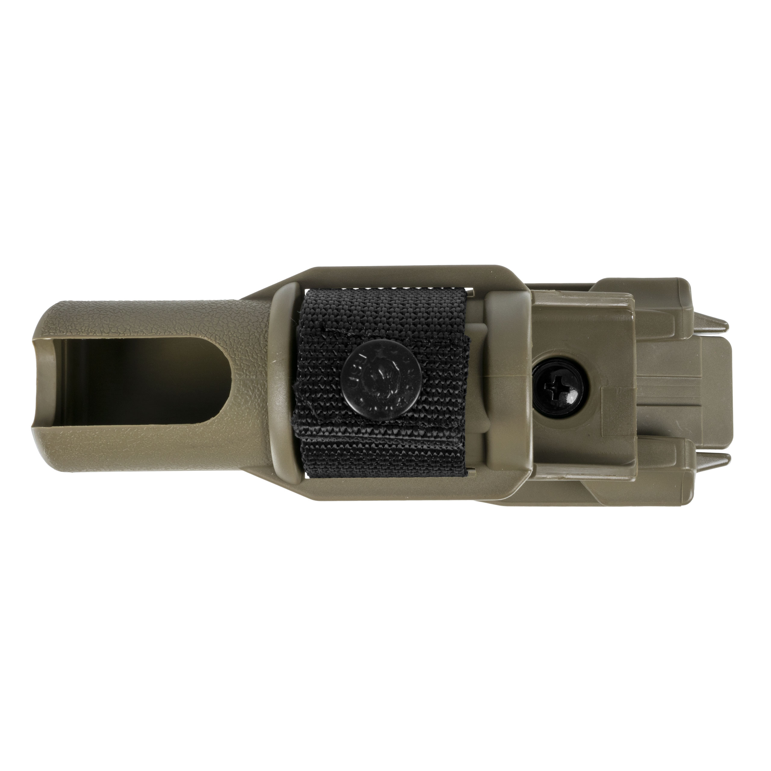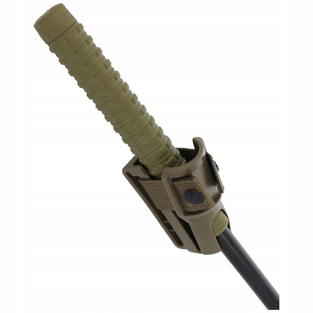 Зелена гнучка пластикова ручка з нековзкою текстурою запобігає ковзанню кийка під час використання. Обертова кобура з петлею для ременя дозволяє зручно носити штангу в складеному чи розкладеному стані.