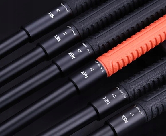 - Телескопічна палиця з оригінальним замком NexLock, що розблоковується за допомогою кнопки.