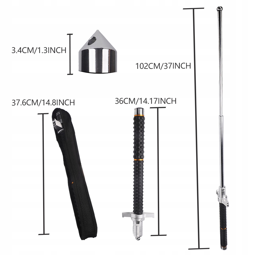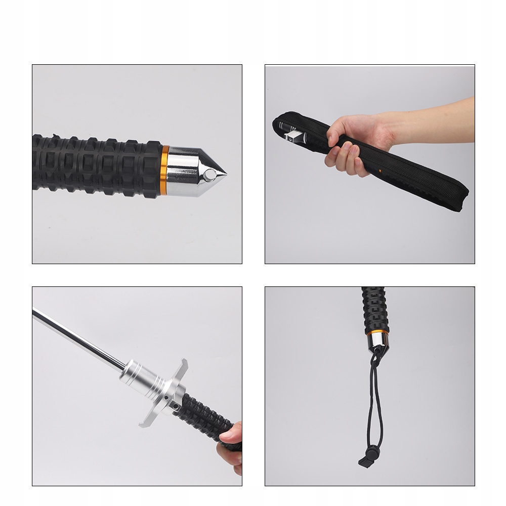 - ✅️Телескопічний для різних потреб,3-секційна палиця самооборони. На кінці ручки є розбивач скла, що полегшує втечу.