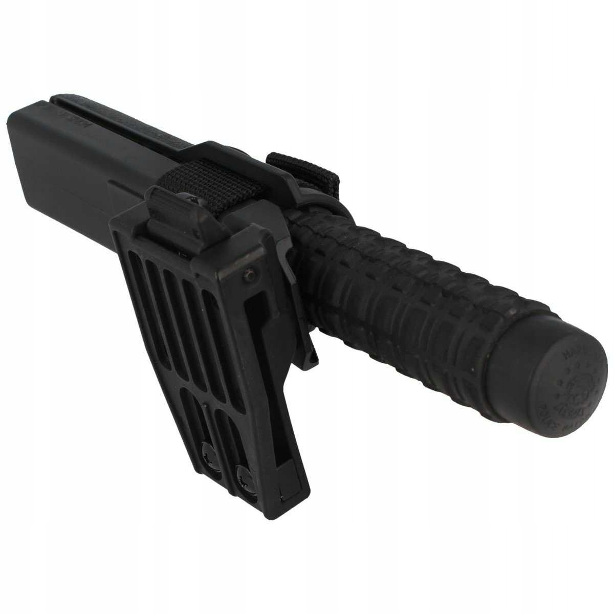 Полімерна кобура повністю обертається на 360°, тож ви можете налаштувати її відповідно до своїх потреб і зафіксувати в одному з 16 положень. Естафету в кобурі можна носити як в складеному, так і в розкладеному вигляді. Кобура в системі UBC-05 - (Quick Change System), насувається на ремінь і дозволяє дуже швидко зняти тримач дубинки і змінити його на інший тримач, сумісний із UBC-05- (система швидкої зміни)незалежно від того, підсумок це чи кобура для зброї. Щоб кобура не рухалася на поясі, ми використовуємо кріпильні гвинти, щоб жорстко встановити кобуру.
