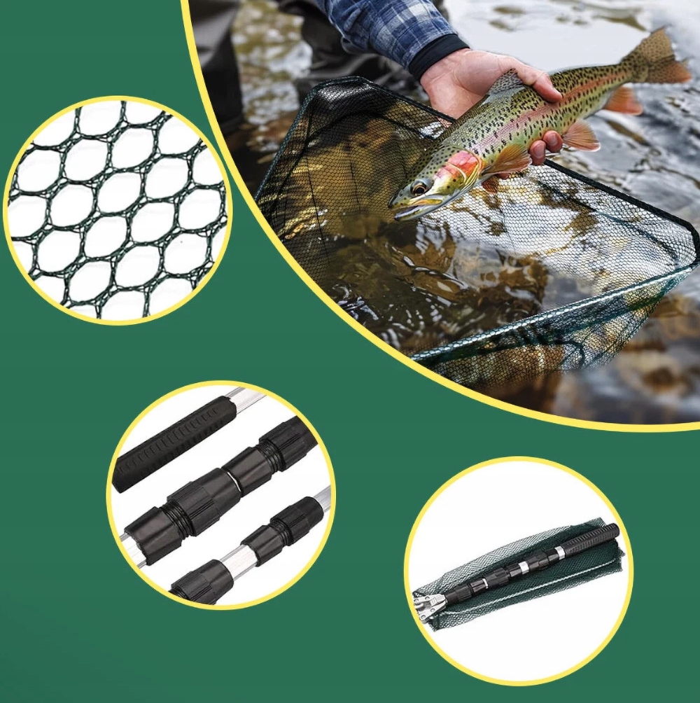 ідеально підходить для кожного рибалки! Ця телескопічна посадкова сітка поєднує в собі легкість, довговічність та зручність використання. Незамінний на кожній риболовній експедиції!