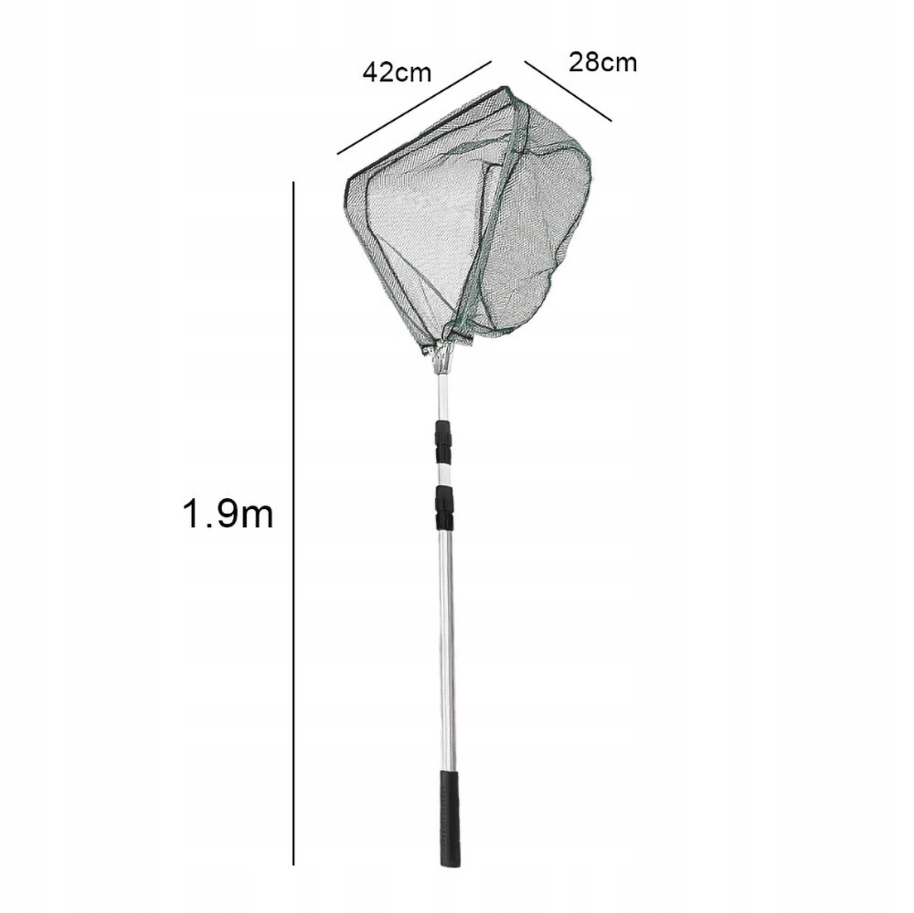 Риболовна сітка має складну конструкцію, закопаний стрижень і легкий рамка, що робить його легким для перенесення та зберігання. Несижива для ковзання забезпечує певне зчеплення, гарантуючи безпечну та стабільну риболовлю. Розтягнута довжина мережі становить 1,9 м.