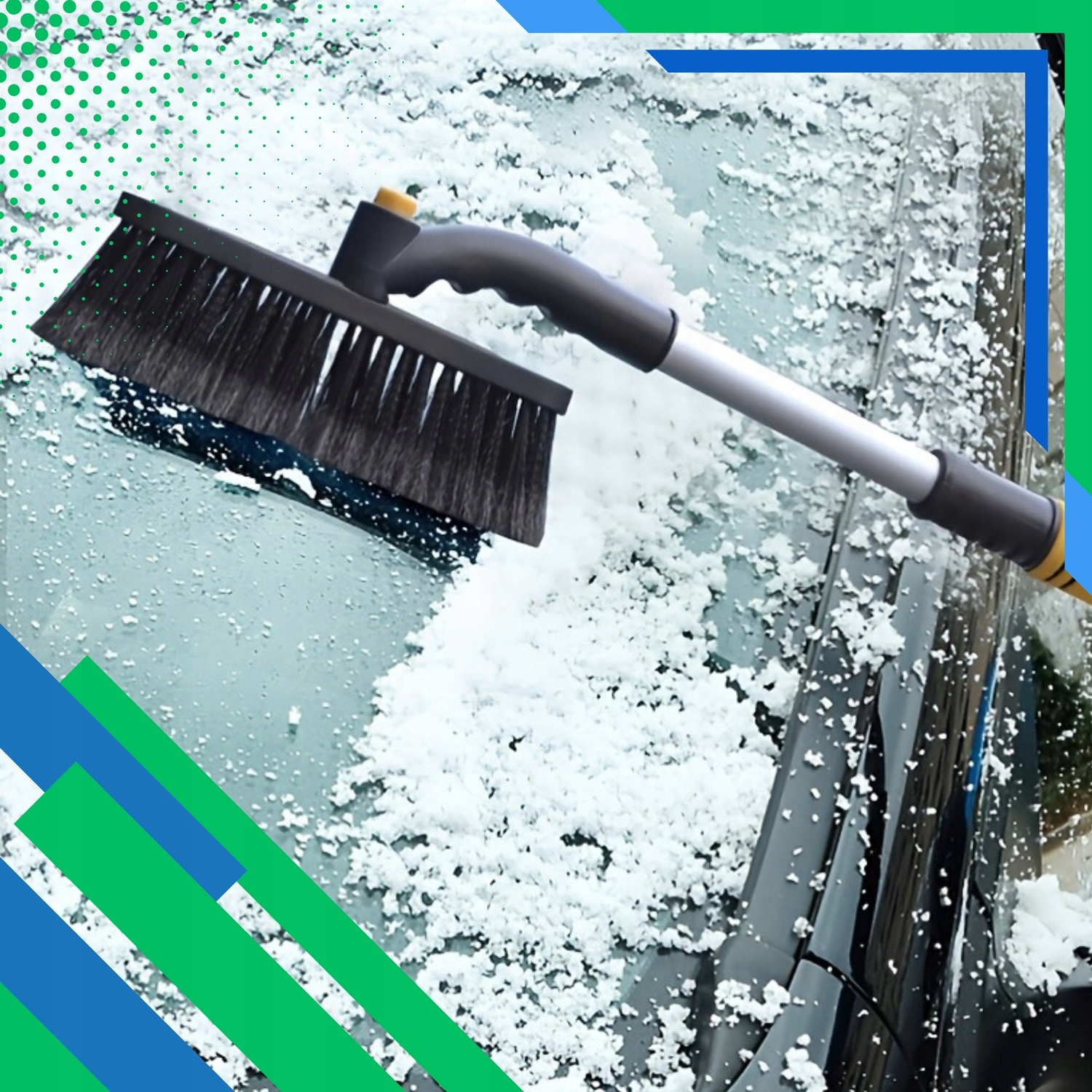 Щітка оснащена м’якою, але міцною щетиною, яка ефективно видаляє сніг, не дряпаючи фарбу.