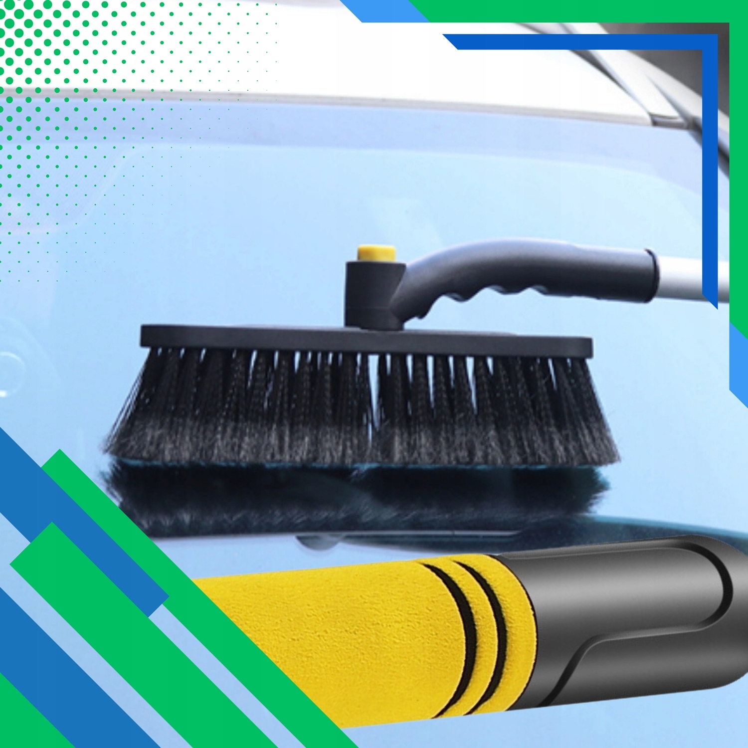 М'які щетинки та гнучкий скребок безпечні для кузова та вікон, а зручна пінопластова ручка забезпечує комфорт використання.
