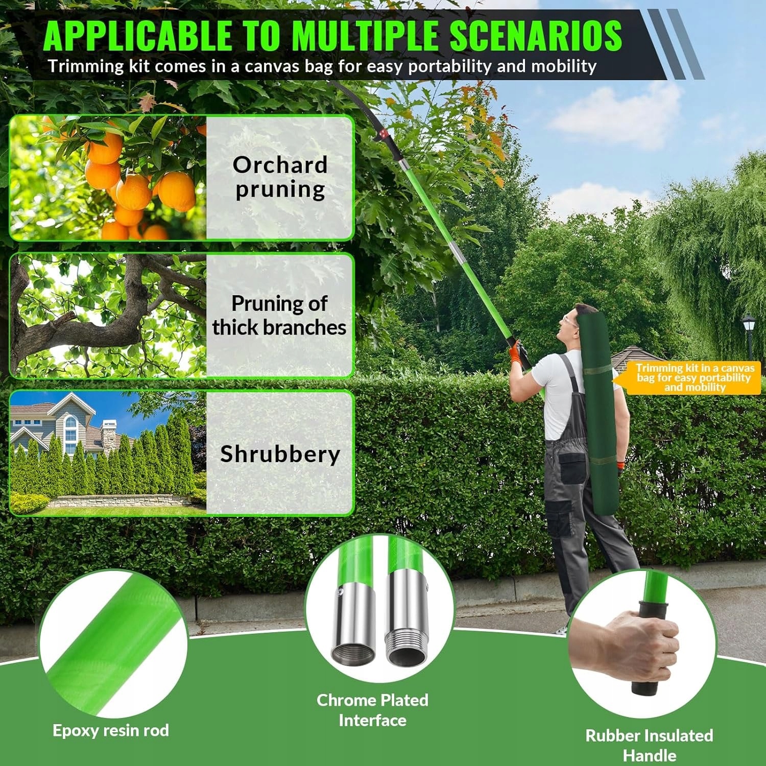 ✅ Застосування: обрізка гілок, листя, кущів і дерев