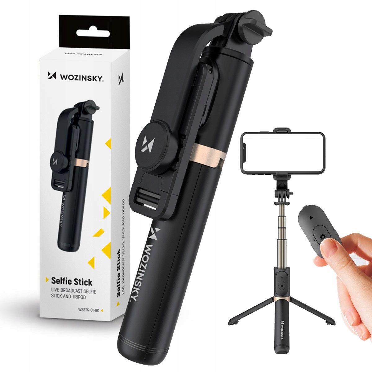 Селфі-палиця Wozinsky з телескопічним штативом і пультом дистанційного керування Bluetooth - чорний (WSTK-01-BK)