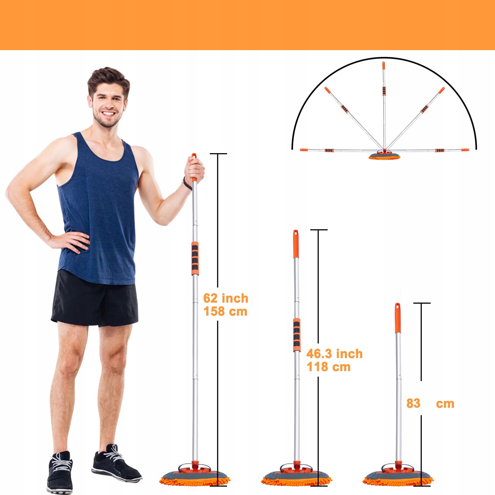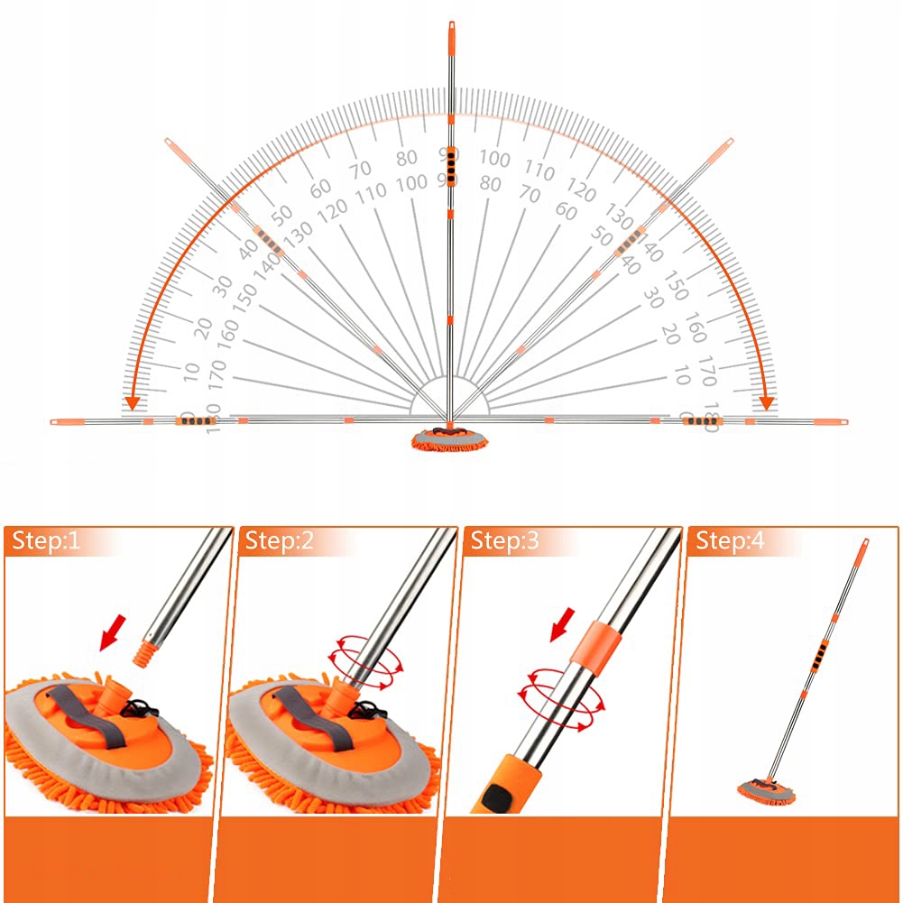 🟢Телескопічна конструкція та регульована на 180 градусів голівка швабри роблять вас більш гнучкими під час миття автомобіля та забезпечують легке повне очищення.