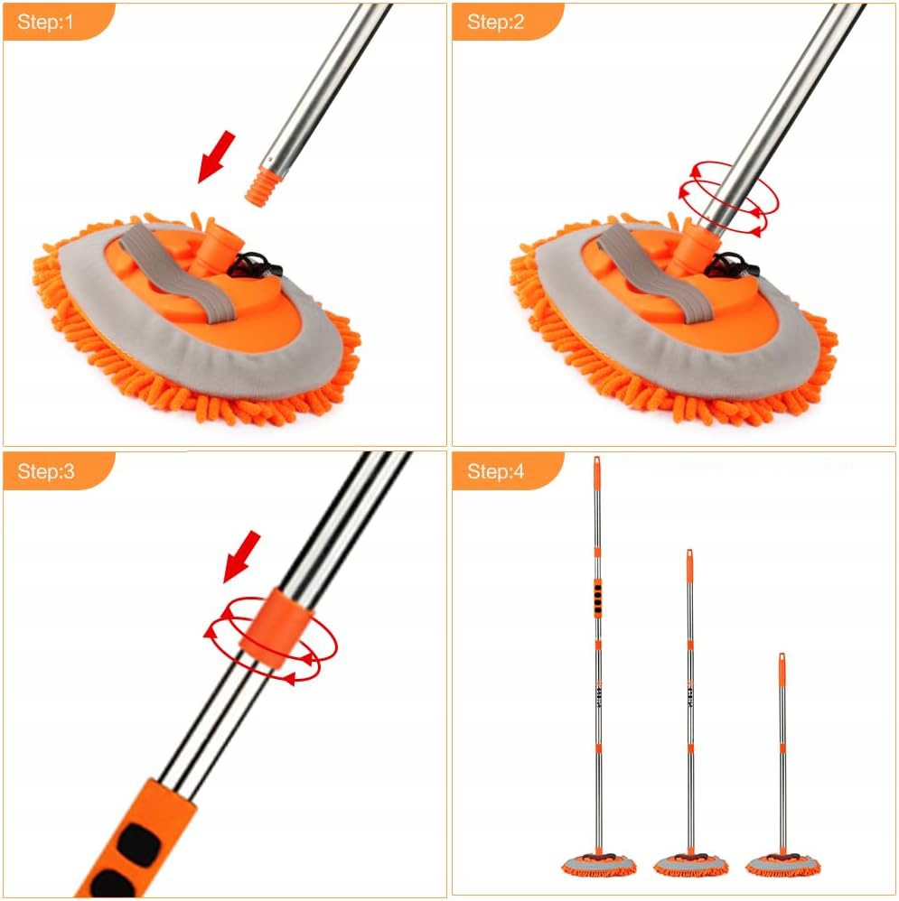 - Регульована на 180 градусів голівка швабри дає вам більше можливостей під час миття автомобіля та гарантує, що ви можете легко виконати повне прибирання.