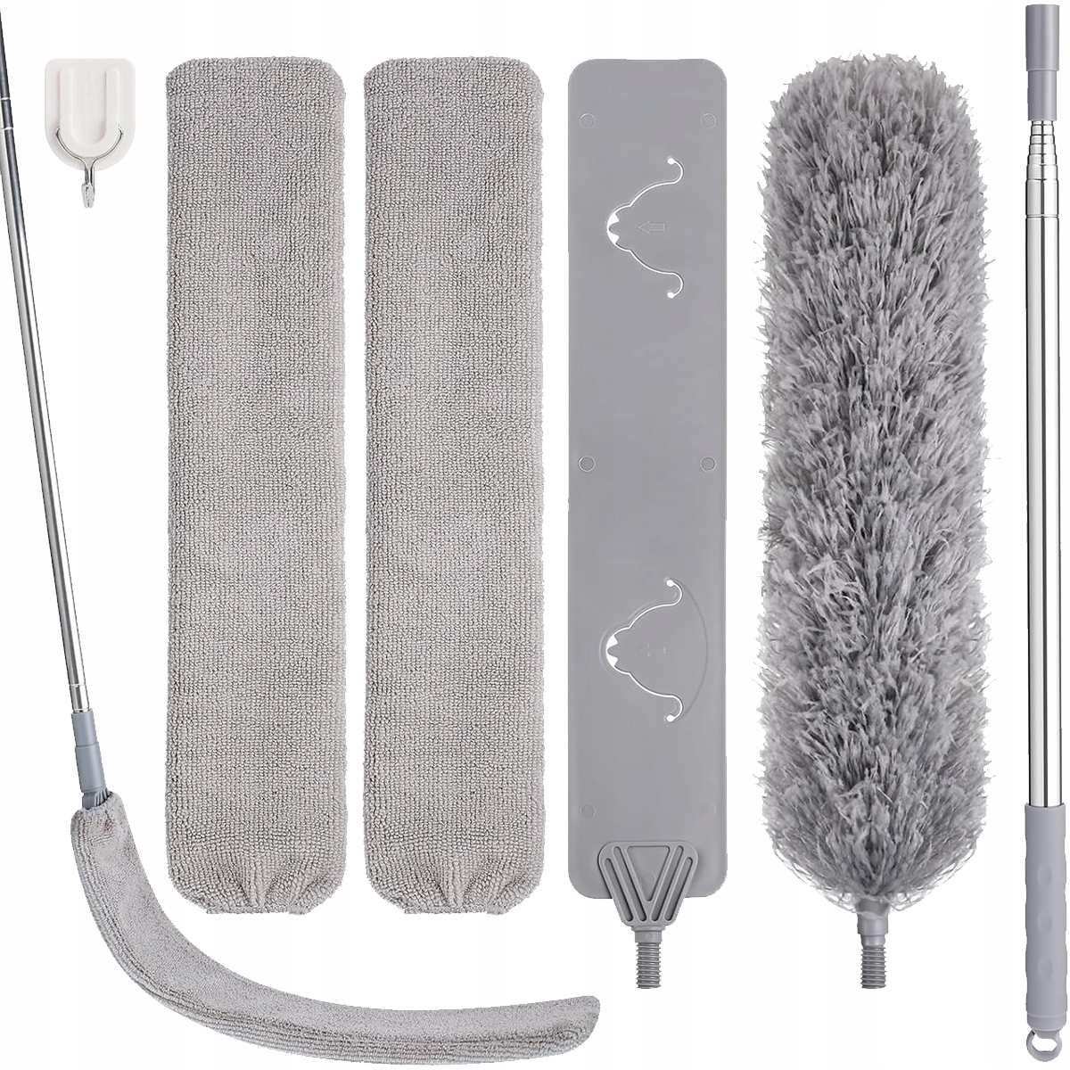 ⭐ Ви можете зберігати 1 пилову мітлу, 1 плоску головку + 2 накладки мікрофібри, 1 телескопічний стрижень і 1 гачок з клеєм ззаду. Два обкладинки матеріалу для полегшення очищення та заміни. Матеріальна кришка та тканина можна багаторазово. Після використання їх можна демонтувати, промивати водою і висушити у провітрюваному місці.