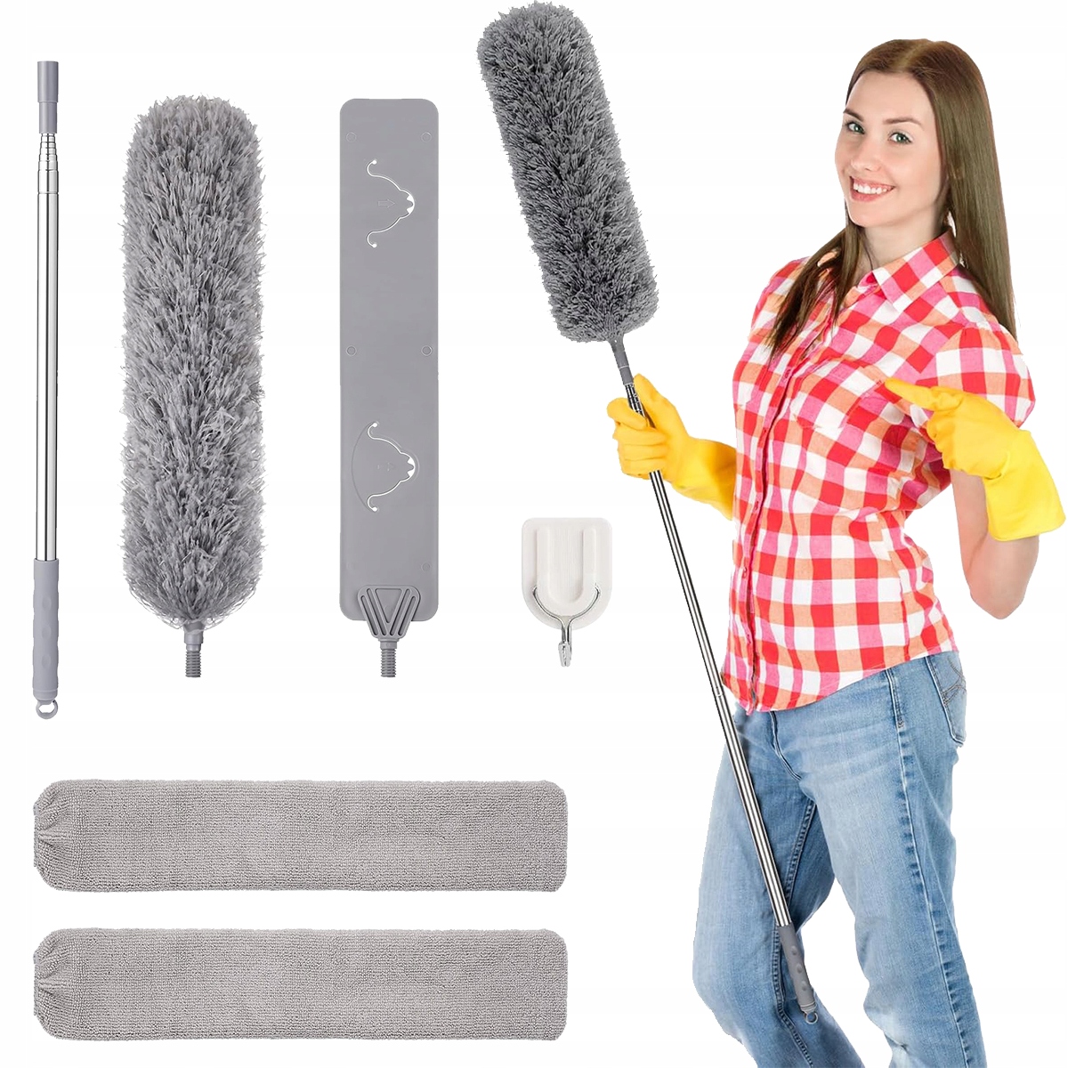 ⭐naze Пристрій для видалення арахніду та телескопічну мітлу можна використовувати мокрою або сухою, а телескопічна палиця легка і зручна для утримання. Цей комплект для очищення пилу допоможе вам зробити домашнє завдання більш зручно та ефективніше. Він ідеально підходить для сімей або домогосподарок для очищення стельових вентиляторів, люстрів, жалюзі, підлоги, плитки, полиць, меблів, вікон тощо