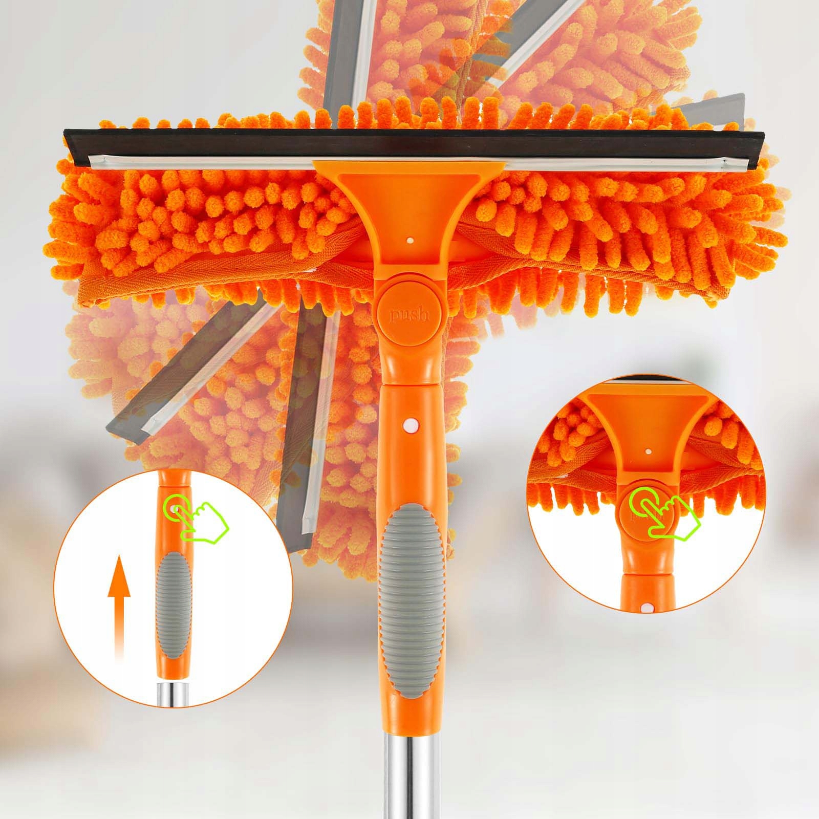 Ручка довжиною 1,8 метра складається з 4 телескопічних палиць, довжина яких можна налаштувати відповідно до ваших потреб. Підходить для скляних вікон різної висоти для підтримки чистоти вікон і ширм.