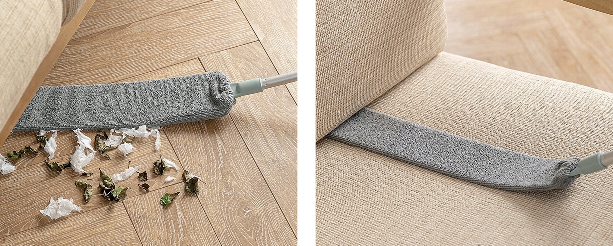 Підніміть прибирання на вищий рівень! Мітла має два змінних наконечника. Щітка поздовжня зі знімним очисником призначена для щілин і рівних поверхонь. Завдяки можливості вільно згинатися, ви можете навіть залізти під холодильник. Є також кругла щітка, яка ретельно видалить пил і павутину з-за шаф, стелі, меблів і багатьох інших куточків. А можливість згинати його будь-яким способом дозволить дістатися навіть до самих важкодоступних місць. Плоский наконечник виготовлений з гнучкого і міцного матеріалу. Відтепер ви можете прибирати без обмежень. Ви можете будь-яким чином зігнути круглий кінчик, щоб дістати до найбільш важкодоступних місць.