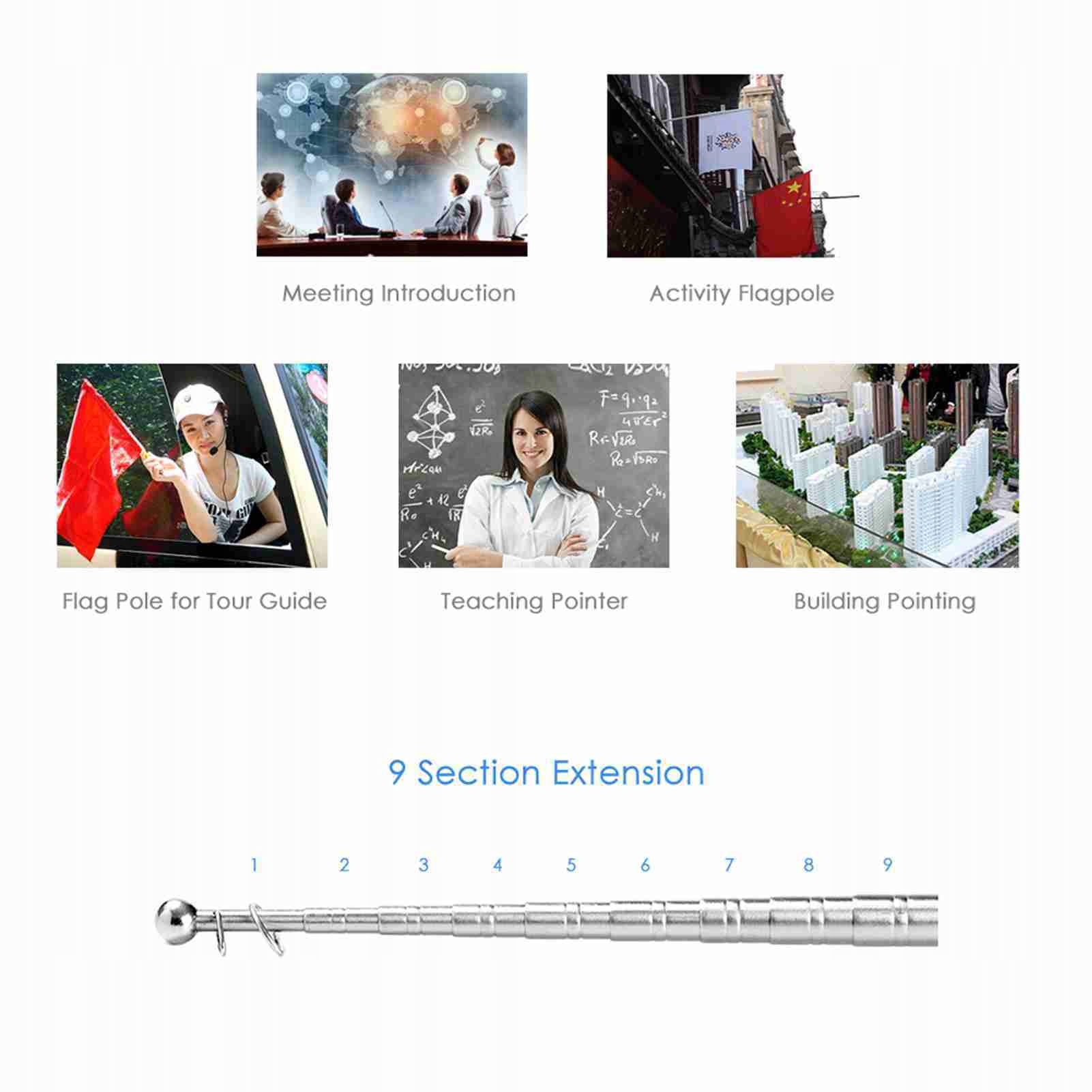 Цей власник прапора працює добре, телескопи і складаються добре. Його можна використовувати для портативного прапора. Це чудово підходить для вчителя, путівника, дивана, фанату, вболівальників та талісманів. Підходить для парадів, заходів на стадіонах, задніх дверях, вечірках, випускних, пікніках у кемпінгу та просування магазину.