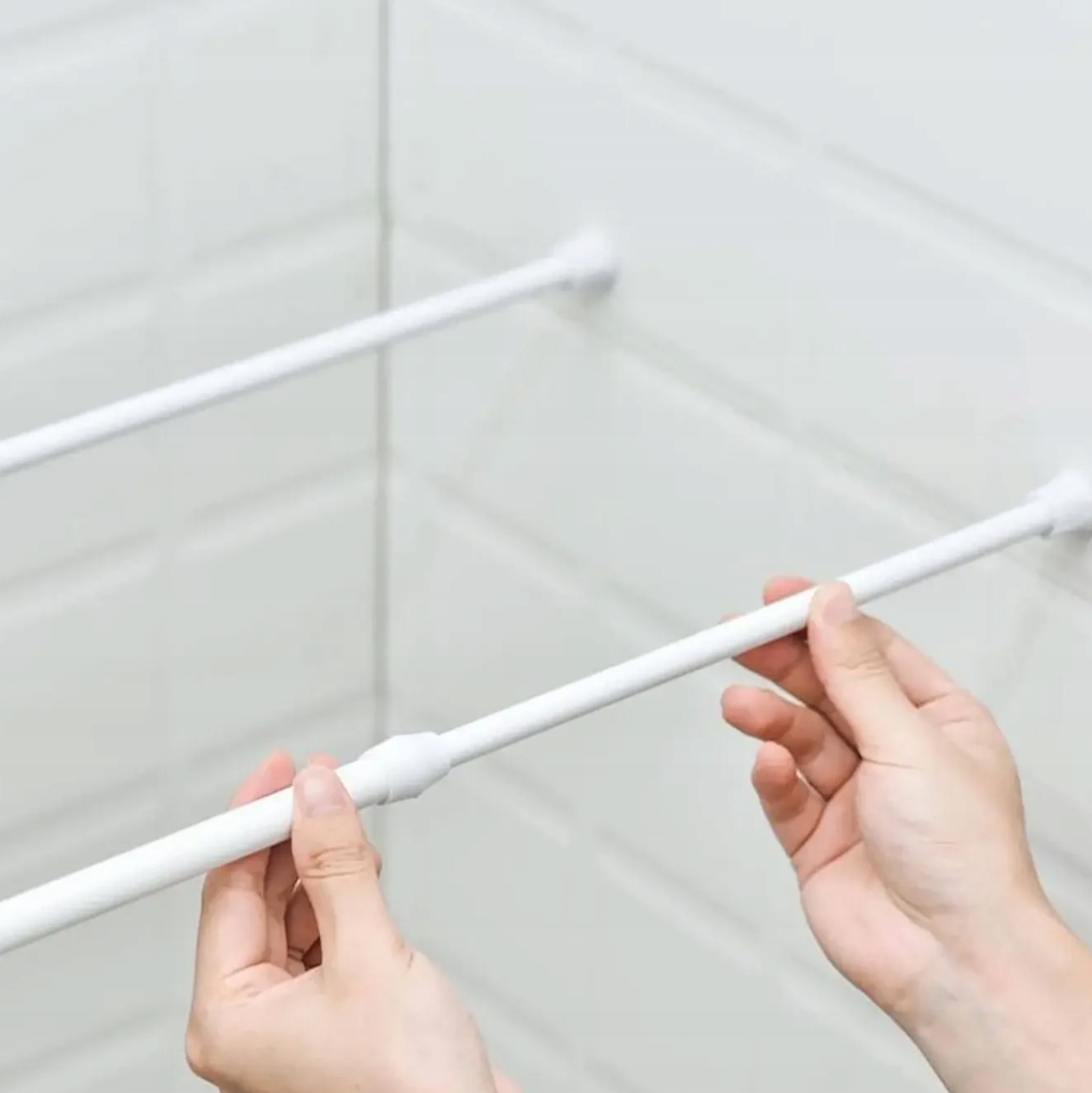 Просте встановлення є його головною перевагою - просто виберіть правильний розмір вудилища для ваших потреб. місце, де він буде кріпитися, а потім відкрутіть карниз так, щоб він притискався до обох стін. При правильному натягу він стійкий і здатний витримувати багато кілограмів. Цей спосіб безпечний і не пошкоджує стіни, оскільки має гумові ніжки на кінцях.