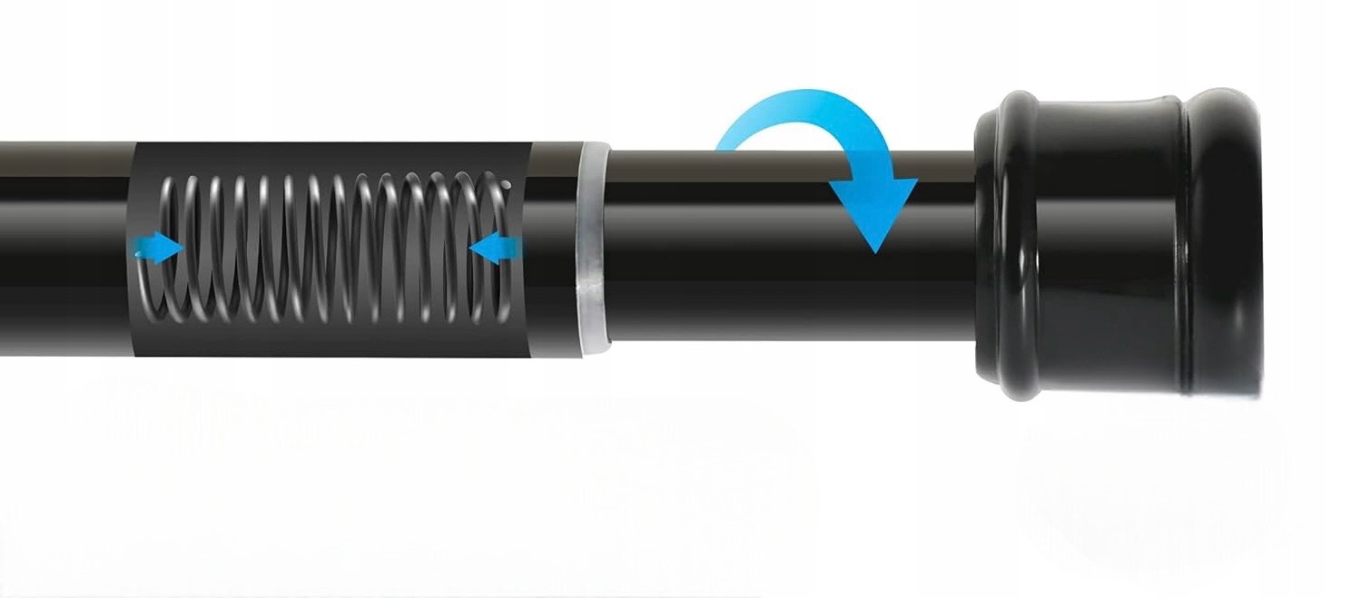 Телескопічний карниз без свердління зручно і непомітно дозволяє прикріпити трубку до шторок для душу у ванній кімнаті, до штор у вітальні, або як стрижень для підвішування одягу.