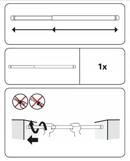 Просте встановлення є його головною перевагою - просто виберіть відповідний розмір стрижня за місце, де він буде кріпитися, а потім відкрутіть карниз так, щоб він тиснув на обидві стінки. При правильному натягу він стійкий і здатний витримувати багато кілограмів. Цей спосіб безпечний і не пошкоджує стіни, оскільки має гумові ніжки на кінцях.