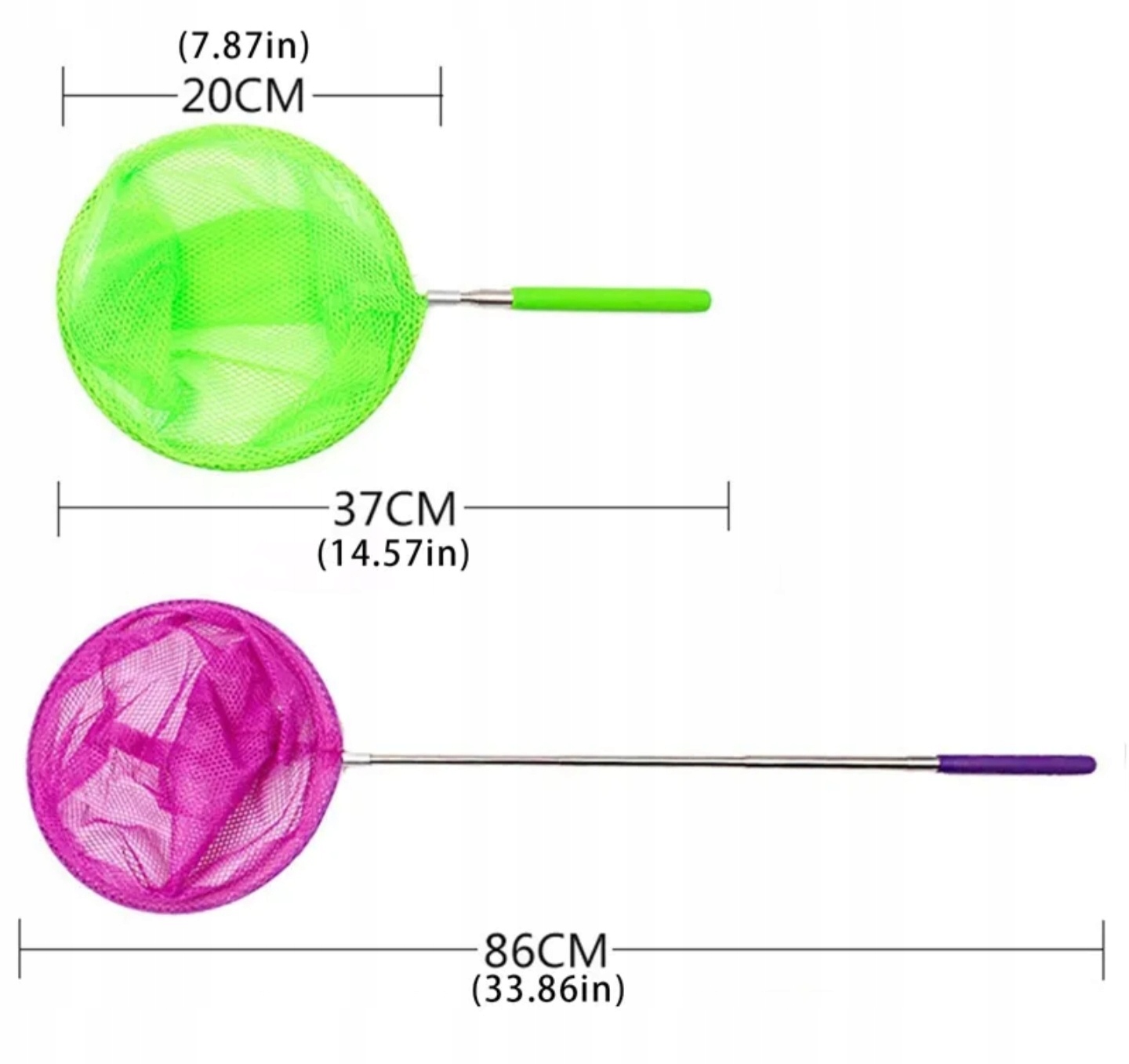 Телескопічна сітка для метеликів або риболовлі. Перевага полягає в здатності регулювати довжину. Сітковий ободок виготовлений з металу. Сітка заохотить дітей грати на вулиці та дізнаватися про природу.