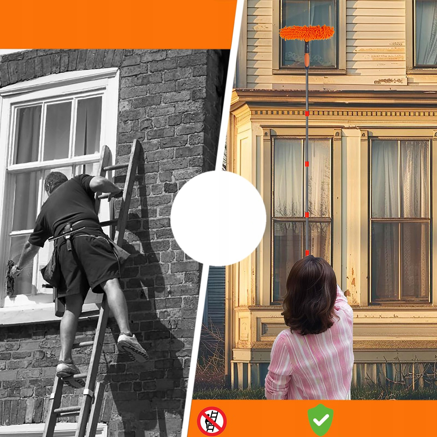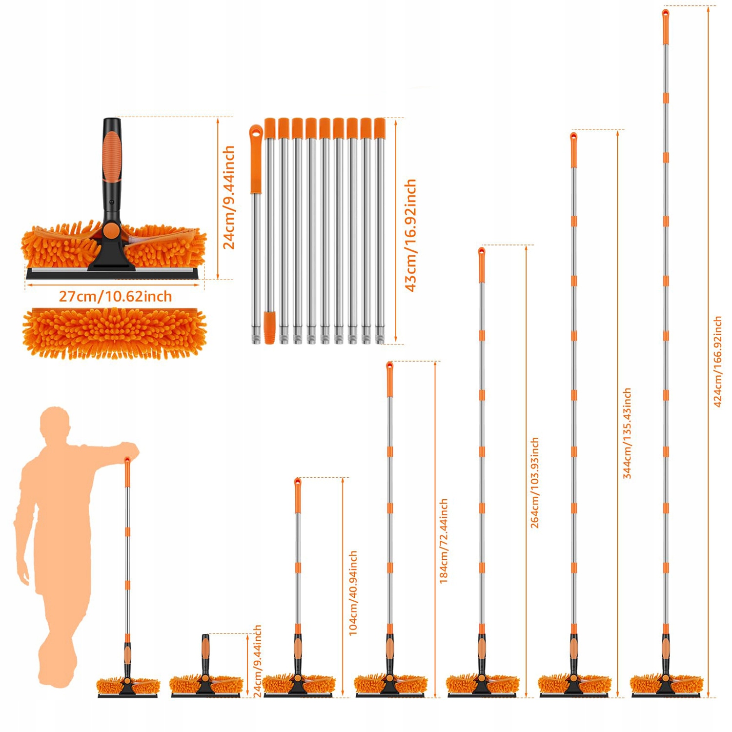 【Покращений подовжувач】: цей потовщений подовжувач має 10 знімних стовпів, які зменшують навантаження на руки та полегшують вашу роботу. Додаючи або видаляючи стовпи, ви можете регулювати довжину до 424 см, що дозволяє легко чистити без драбини чи сторонньої допомоги.