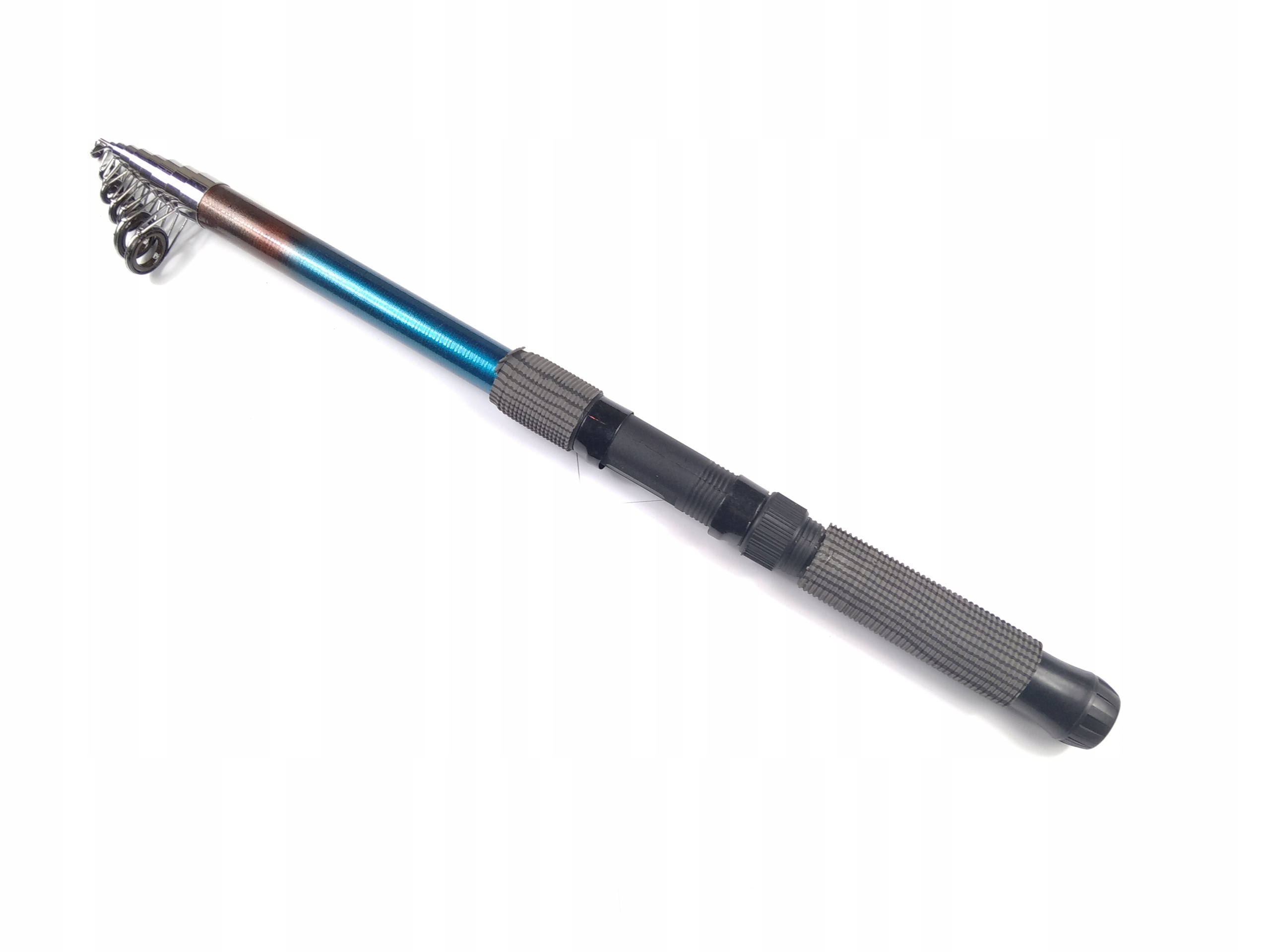Зручна ручка та надійне кріплення котушки. Довжина палиці 400 см. Телескопічна конструкція полегшує транспортування до місця риболовлі. Прогумований наконечник обуха вудилища, в який можна вставити гачок набору.