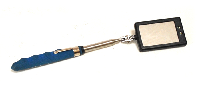 Дзеркало з двома світлодіодами та телескопічною штангою. Добре працює в автомайстернях. Освітлення однозначно полегшує огляд. Батареї легко замінити, це стандартні батареї, доступні в будь-якому магазині з продуктами такого типу.