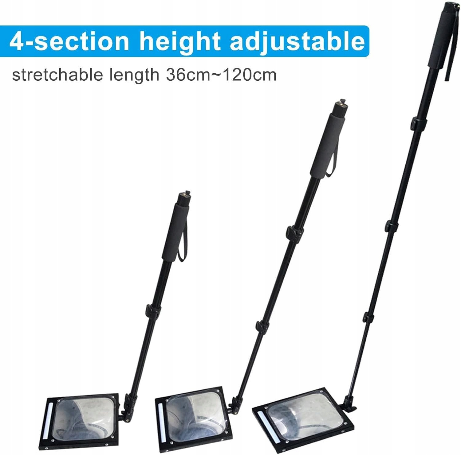 ЛЕГКО ПЕРЕВІРИТИ Телескопічне оглядове дзеркало розміром 20 см x 17 см має опуклий 2-кратний ефект збільшення для оптимального перегляду. Без глухих кутів і втомливого перегляду. Підходить для тривалої роботи, пов'язаної з оглядом столів, стільців під транспортними засобами та інших об'єктів, які необхідно нахилити для обшуку. Регульована вудка Вудилище регулюється від 36 см до 120 см. Нижня частина телескопічної ручки обгорнута м'якою поролоновою прокладкою. Міцна рама та м’яка ручка забезпечують міцне захоплення щоразу. Світлодіодні ліхтарі та дизайн зарядного пристрою Оглядове дзеркало зі світлодіодними ліхтарями дає змогу перевіряти місце несправності автомобіля під різними кутами, не впливаючи на поле зору. Вбудована батарея 1300 Ам постійного струму 5 В, під час перевірки ви не обмежені кабелем. Акрилові дзеркала Основна поверхня оглядового дзеркала виготовлена з вибухобезпечного акрилового дзеркала високої чіткості, який є міцним. ЕКОНОМІЯ ЧАСУ Система телескопічних оглядових дзеркал ідеально підходить для пошуку під капотом вашого автомобіля або пошуку предметів у вузьких і вузьких просторах, не нахиляючись і не втрачаючи концентрації на перевірці.