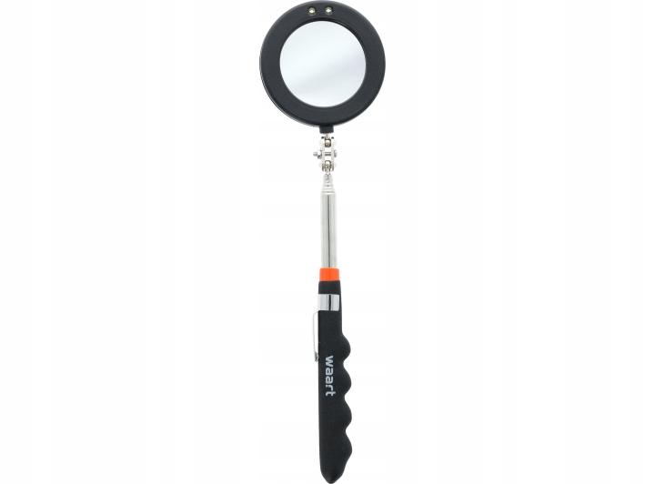 Оглядове дзеркало з підсвічуванням Цей практичний оглядовий інструмент оснащено двома світлодіодами для освітлення. Він необхідний у кожній механічній майстерні, дозволяючи побачити недоступні деталі конструкції транспортних засобів і машин. Дзеркало можна регулювати на 360 градусів. Ідеально підходить як для професійного застосування, так і для домашнього гаража. У розкладеному стані його довжина становить 876 мм, а діаметр дзеркала — 50 мм.