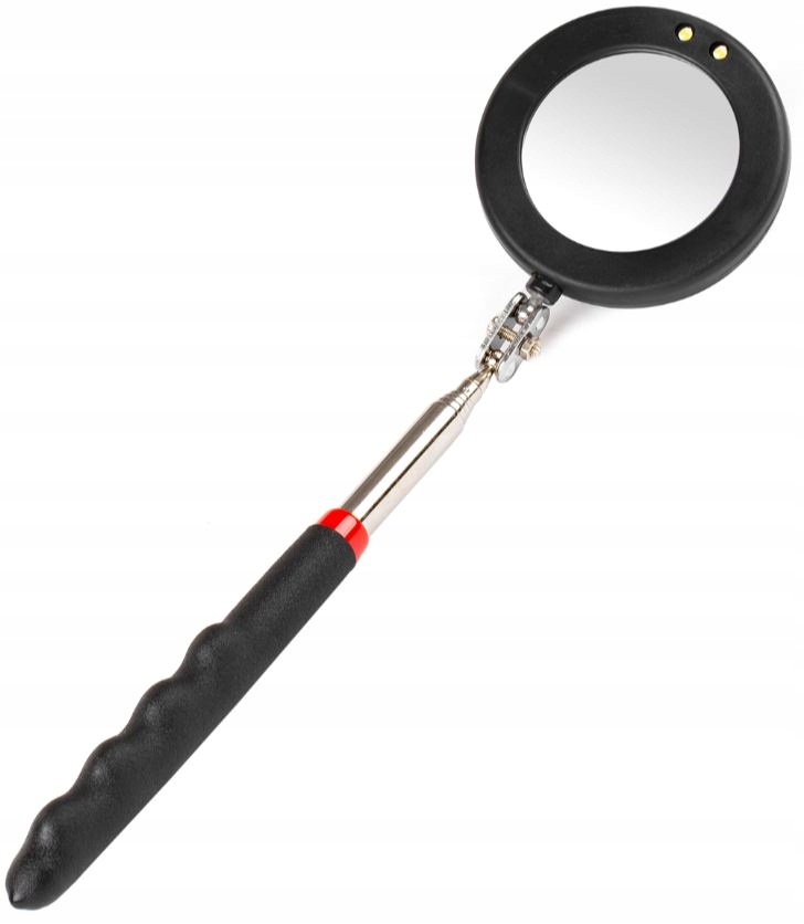 Оглядове дзеркало на телескопічній стрілі, оснащене двома світлодіодними діодами підсвічування. Продукт необхідний в кожній автомайстерні. Дозволяє оглянути недоступні, приховані елементи конструкції автомобілів, машин і т. д. Дзеркало регулюється на 360° відносно стріли. Ідеально підходить як для професійного використання, так і для домашнього гаража.