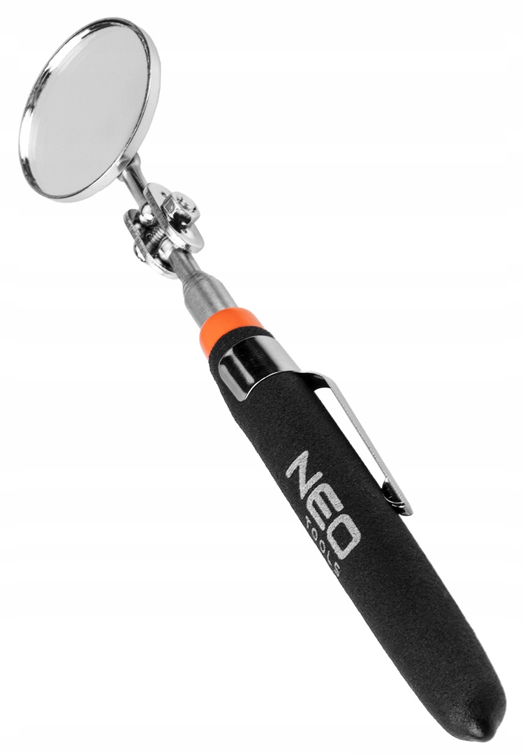 Телескопічне оглядове дзеркало NEO 11-612 - це інструмент з діапазоном від 180 до 480 мм. Оснащений гумовою ручкою і дзеркалом, дозволяє оглядати важкодоступні місця. Виріб має затискач, який дозволяє зберігати його в кишені, як звичайну ручку. З його допомогою можна оглядати приміщення з обмеженим доступом. Рекомендовано користувачам автотранспорту.