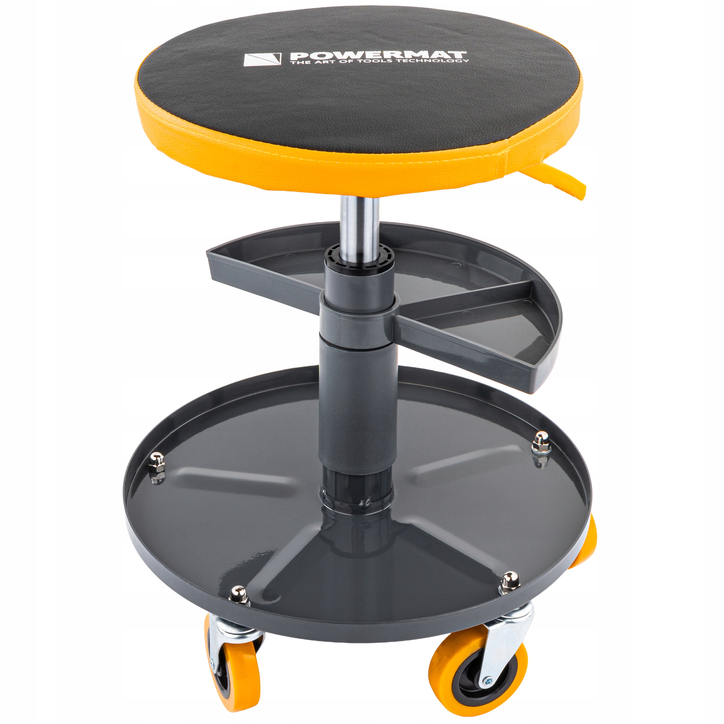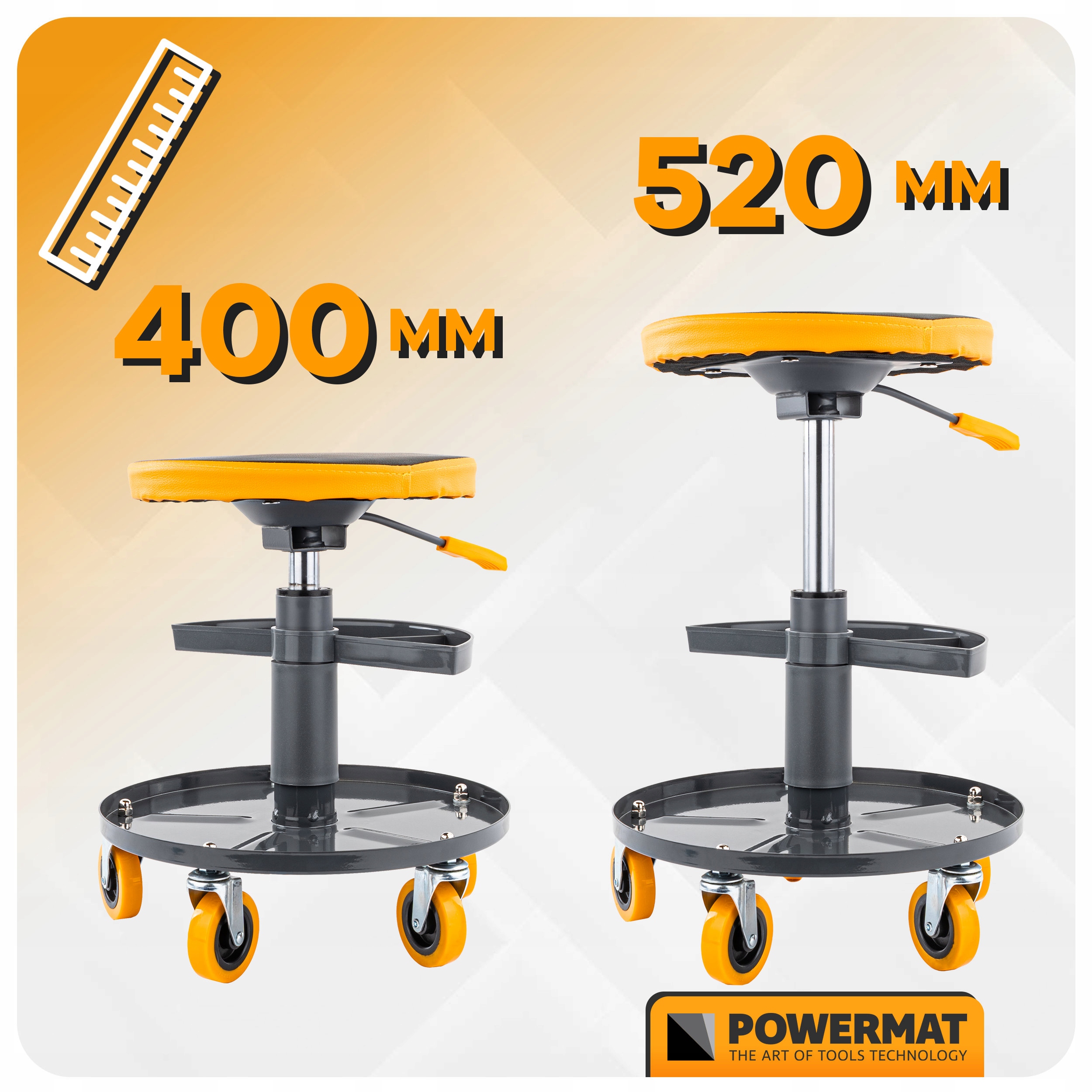 Сидіння для майстерні Powermat - практичний і компактний табурет, призначений для роботи в майстерні, гаражі та для всіх сервісних і монтажних робіт. Міцна конструкція та зручне кругле сидіння забезпечують комфорт навіть під час тривалого використання.