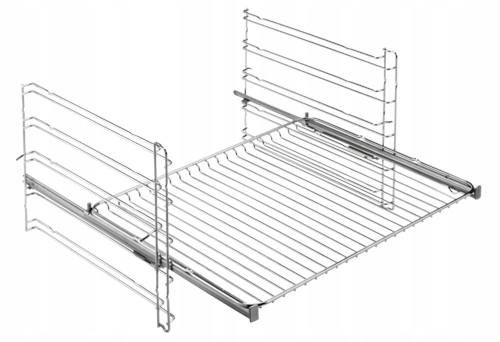 Набір телескопічних напрямних (1 рівень) для духовок. Завдяки їм ви можете зручно висувати лотки, а спеціальний замок не дозволяє їм перекидатися вперед або зісковзувати. Їх можна легко приєднати до наявних напрямних.