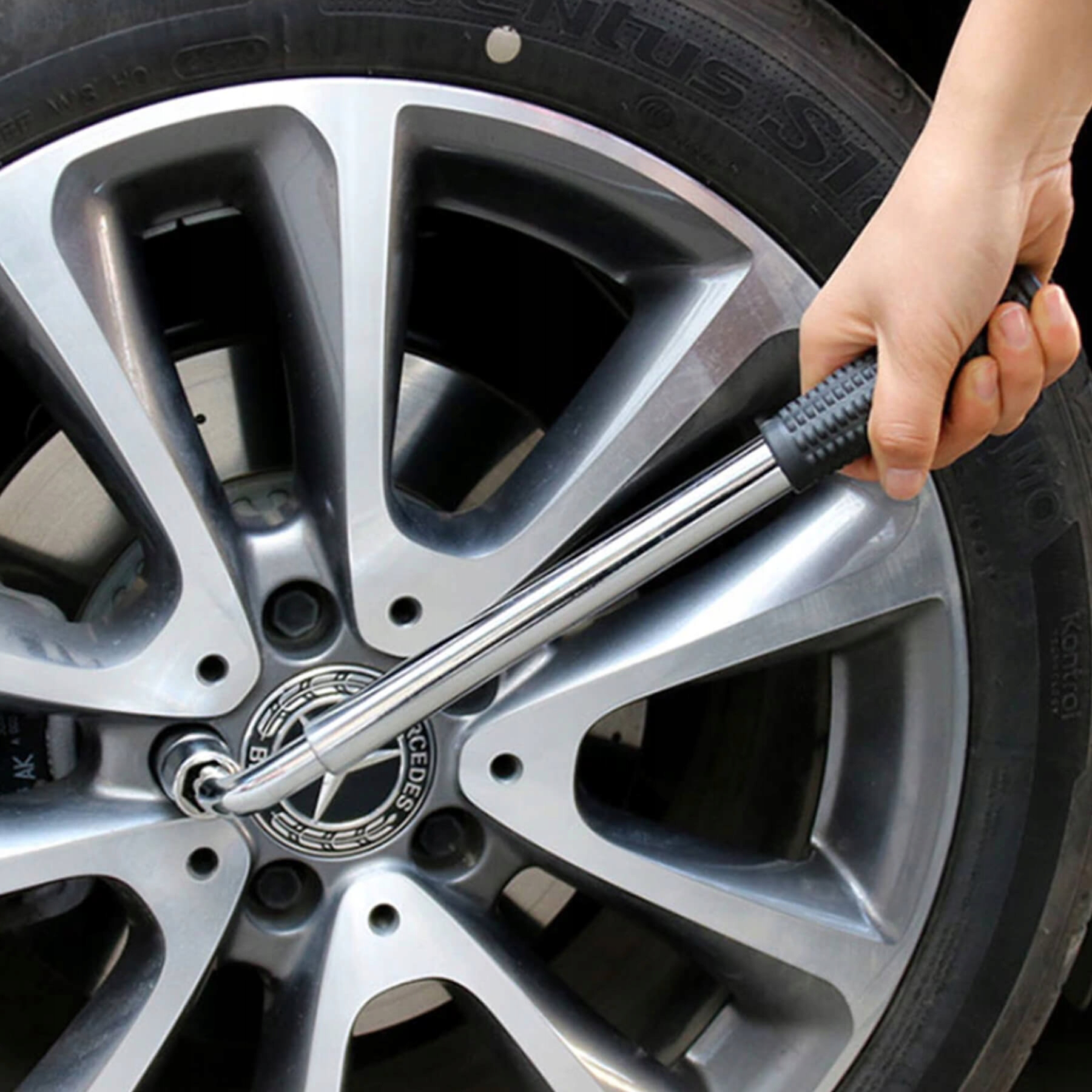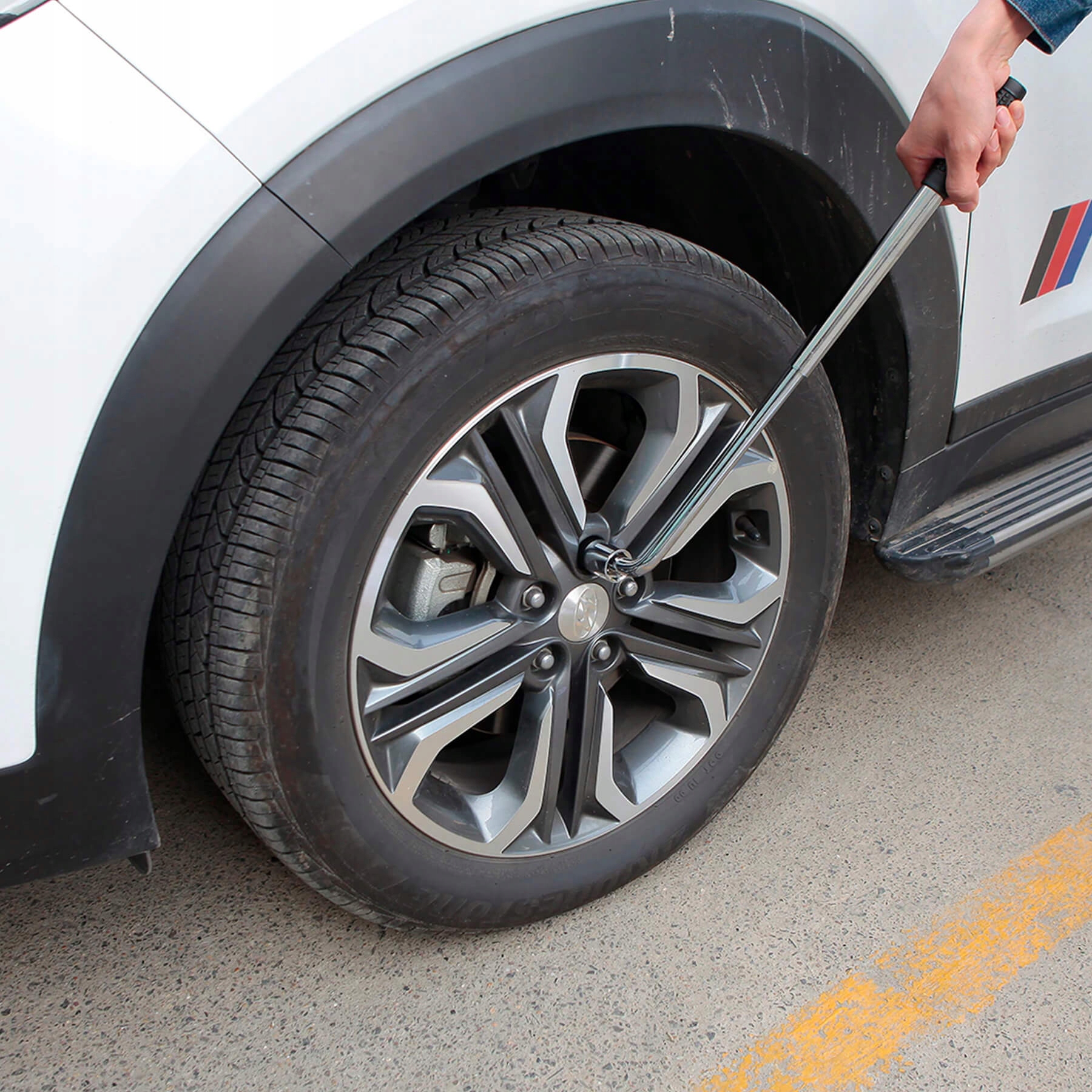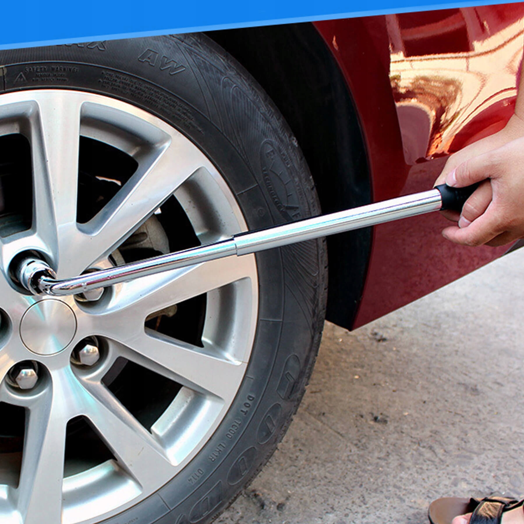 Ключ для коліс має телескопічну ручку, завдяки якій ви можете плавно регулювати довжину ключа та адаптувати її до ваших індивідуальних потреб, щоб було зручно та легко відкручувати та закручувати колісні гайки. Регульований гайковий ключ довжиною від 350 мм до 500 мм дозволяє використовувати менше зусилля, щоб послабити або затягнути колеса. Телескопічний гайковий ключ дозволяє нам змінювати його довжину на найкоротшу, щоб ми могли легко зберігати його.