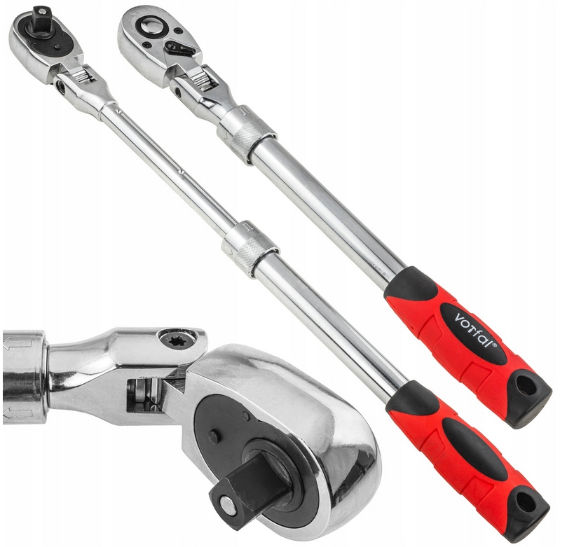 Телескопічна тріскачка для розеток 1/2'' довжиною від 305 мм до 445 мм. Тріскачка виготовлена з хром-ванадію сталь CRV6135. Використовуйте для обслуговування, майстерні та промислових робіт.