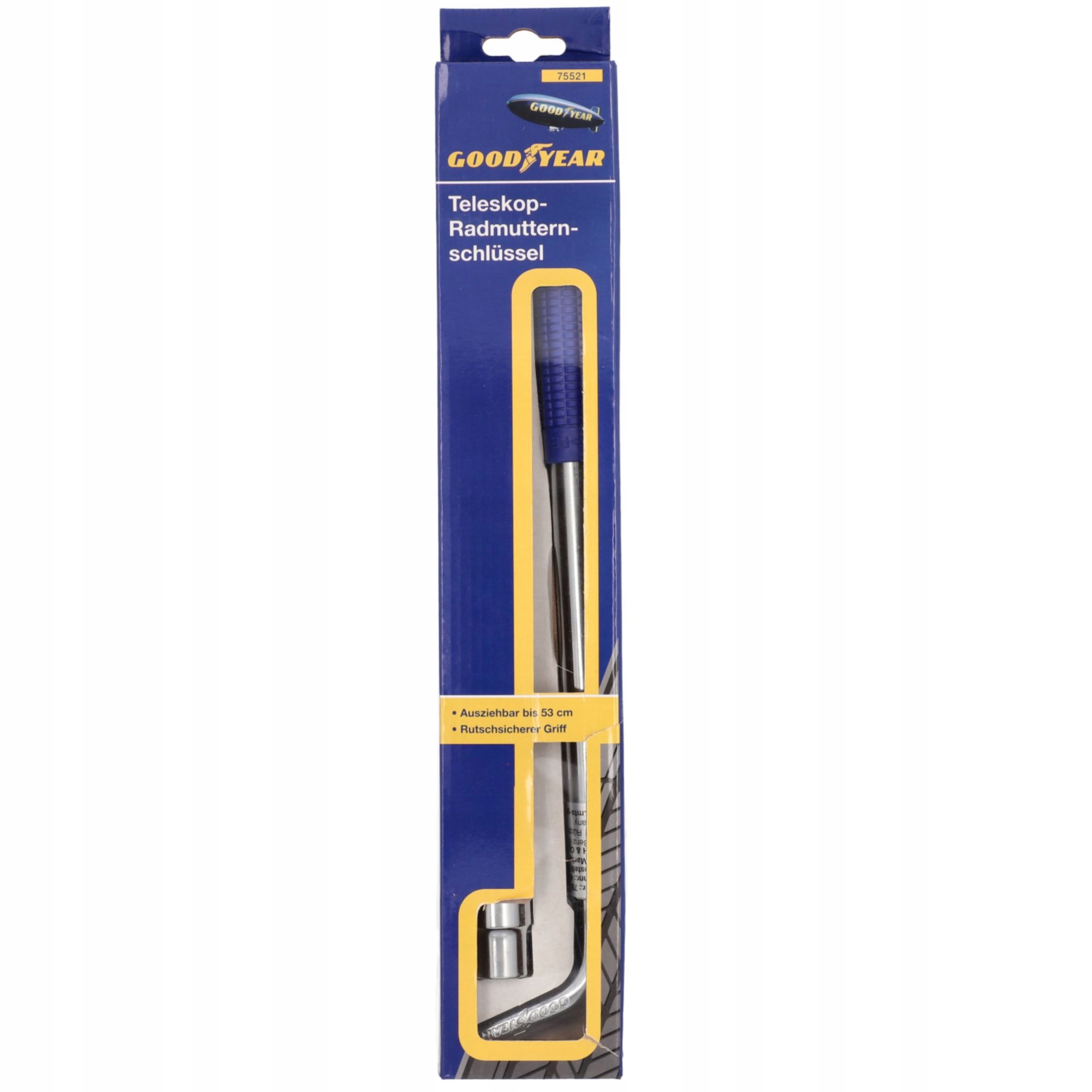Телескопічний ключ для коліс GOODYEAR — це інструмент, який може несподівано стати в нагоді під час подорожі або доповнити необхідні речі водія в гаражі. Його добре продуманий, міцний дизайн і відмінна якість виготовлення забезпечують задоволення користувачів, які під час використання цінують клас продукту з логотипом GOODYEAR.