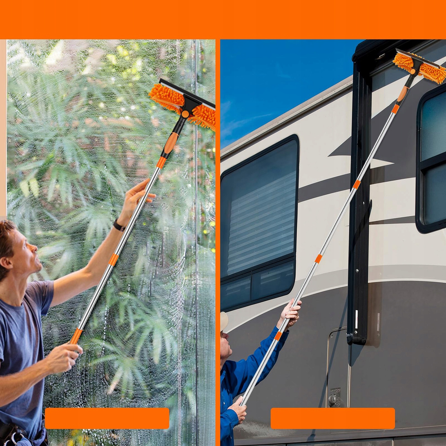 обертовий скребок з регулюванням кнопки: Розташування скрепер можна легко регулювати натисканням кнопки. Ідеально підходить для очищення власних вікон та скла, скляних поверхонь, стін, дзеркал, автомобілів, сонячних батарей та високих вікон, як всередині, так і зовні. Змушує прибирання човна стати дитячою грою!