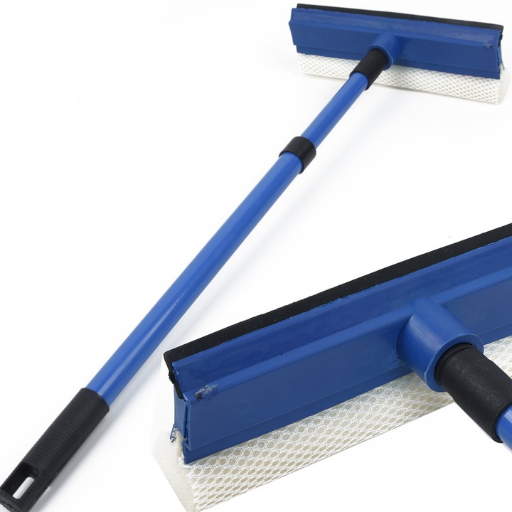 Двостороння телескопічна мийка вікон — безцінний інструмент, який зробить миття вікон швидким та ефективним. Одна сторона мийки оснащена м'якою губкою, яка ідеально вбирає бруд і забруднення, не залишаючи смуг і подряпин, а інша сторона за допомогою гумового ракеля ідеально збирає надлишки води, залишаючи ваші вікна ідеально чистими.