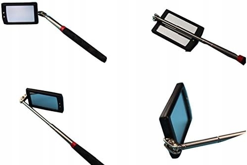 Прямокутне дзеркало розміром довжиною 65 см 47 дюймів після складання довжиною 81 см після складання 19 -см телескопічного дзеркала має два надзвичайно яскраві світлодіоди, що полегшують контроль твердого -доречіння та жорстких для досягнення місць. Він не тільки телескопічний і освітлений, але й оснащений поворотними подвійними кульковими суглобами з 360 градусами для додаткових можливостей перегляду повністю відшліфованого скляного механічного дзеркала стійке до бризок, ідеальних для тісних приміщень під час автомобільних робіт. Упаковка 1 x Дзеркало огляду Дзеркало для огляду ідеально підходить для виробників інструментів інспекторів та механіки лампості, робить її особливо корисною в темних та майже доступних місцях