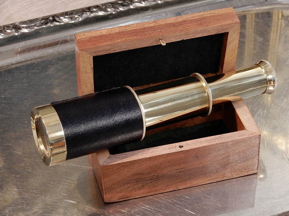 Виготовлений з блискучого металу і покритий чорним шпоном , телескоп - ковзання та світло , тож ви можете легко взяти його на борт - будь то корабель з картонної коробки чи сімейного пікніка. Уява зі старим стилем дослідників. Діти можуть переглянути це (це працює!), Хоча ми не гарантуємо, що вони побачать Кракена.