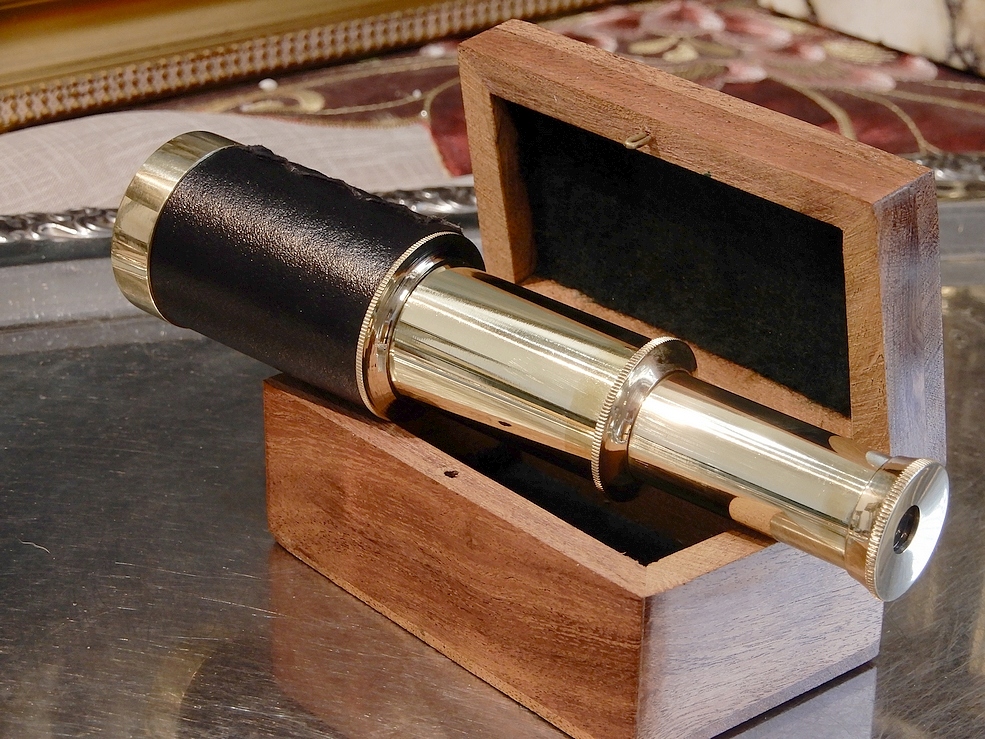 ahoj przygodo! Перед вами піратський телескоп у класичному стилі , закритий у елегантній дерев’яній коробці. Ідеально підходить для дитини, яка шукає скарб і для дорослого, який колись хотів бути капітаном. Або принаймні трусики.