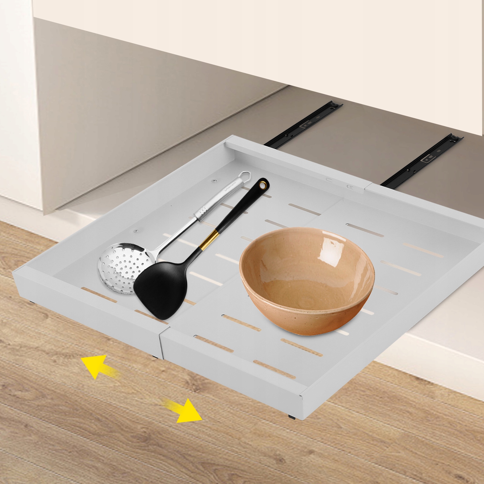 Це інструмент, доступний у невеликому просторі, в якому є телескопічний ящик для шаф, пристроїв з метою створення добре доступного та легко доступного місця для зберігання. Завдяки високоякісній матеріалах та майстерності, існує практичне, технічне обслуговування та естетику, завдяки якому пристрій вміститься в домашньому середовищі завдяки простому, але надійному вигляду.