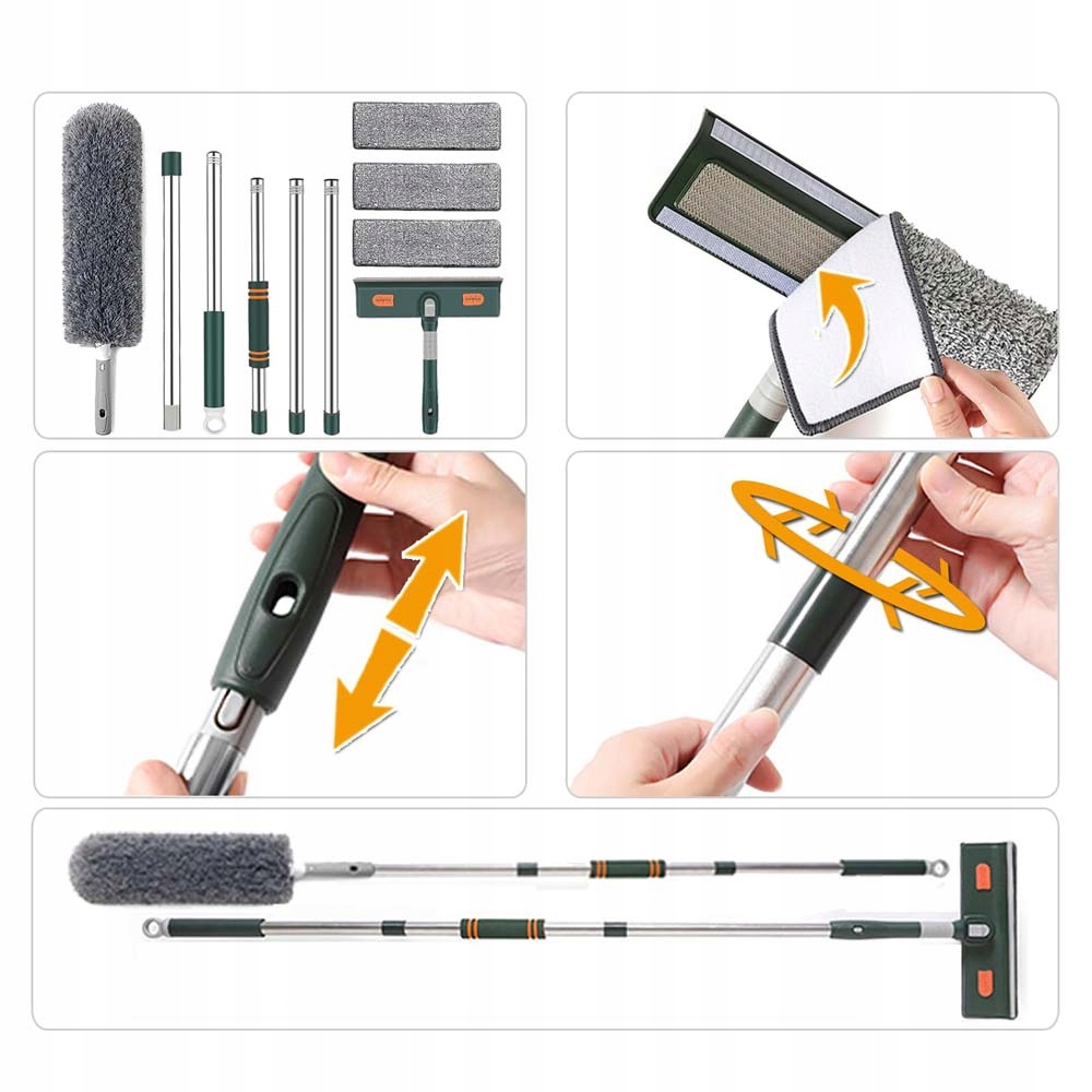 TELESKOPOWA MYJKA DO OKIEN SZYB LUSTER ZE ŚCIĄGACZKĄ DŁUGI KIJ 2.1M