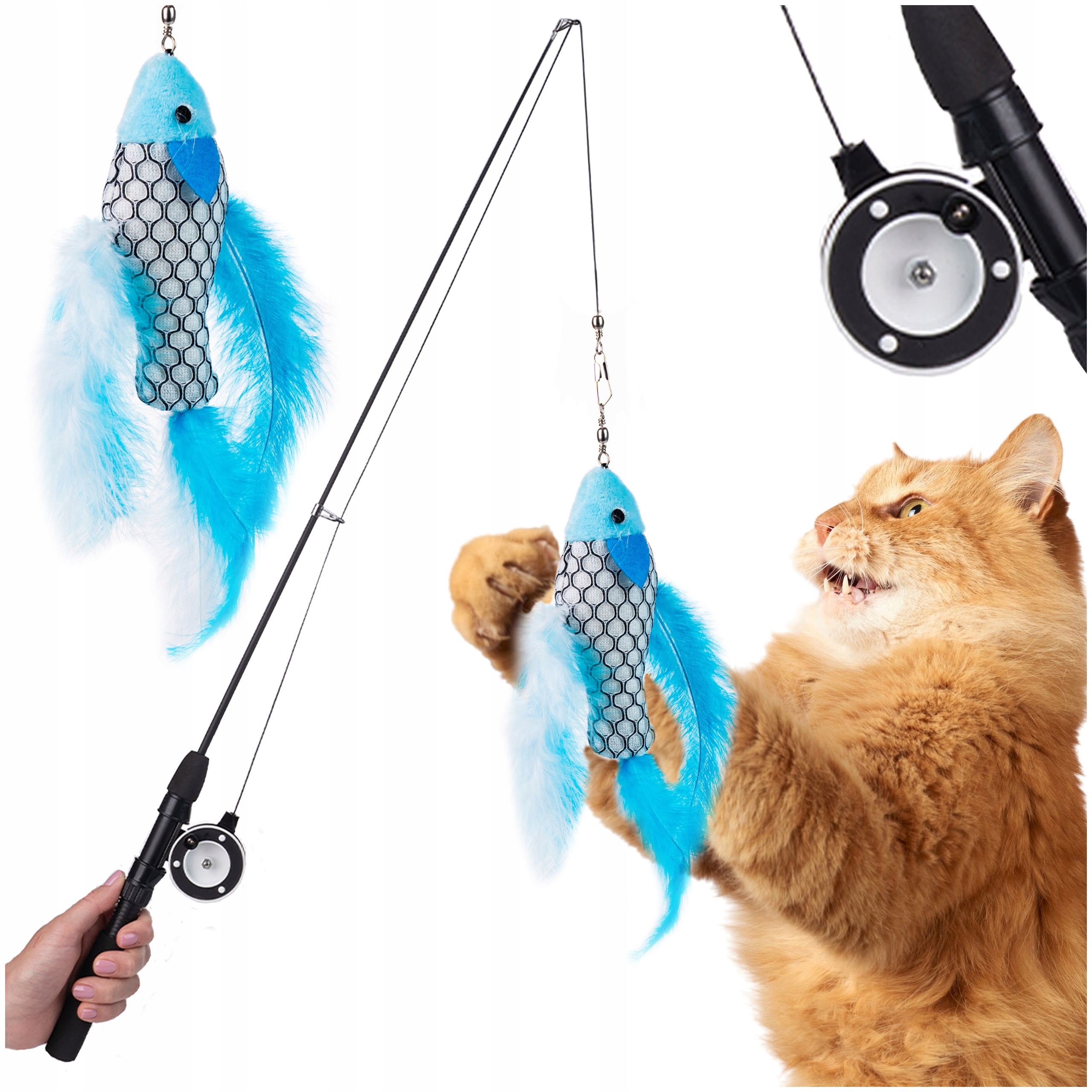TELESKOPOWA WĘDKA Z KOŁOWROTKIEM DLA KOTA INTERAKTYWNA ZABAWKA Z PIÓRKIEM