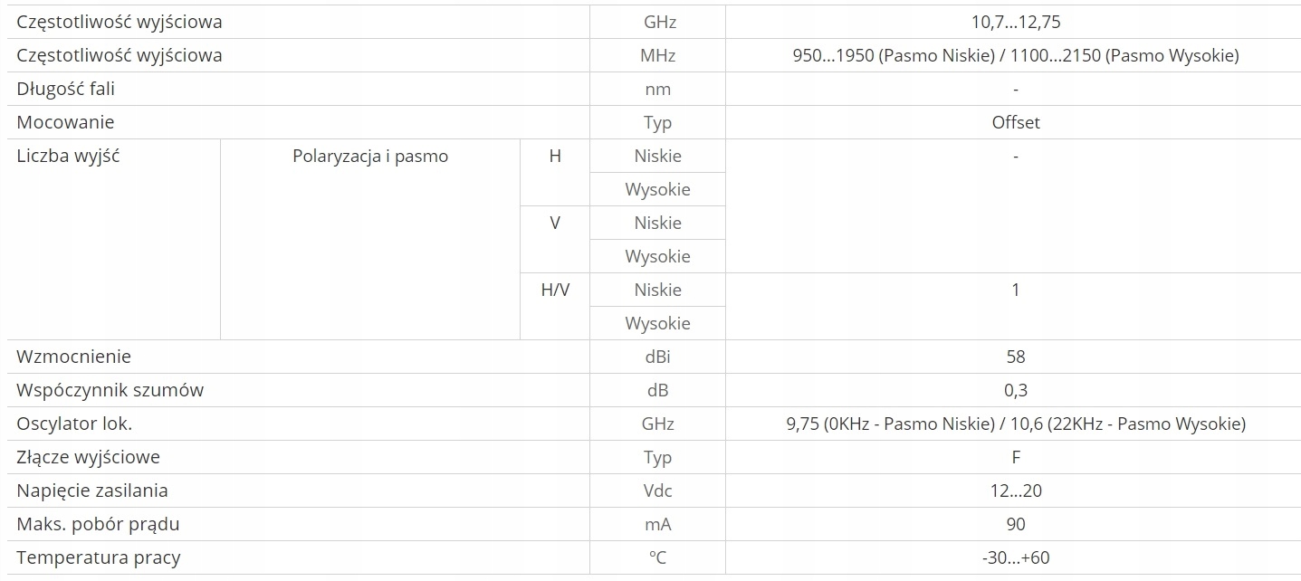 Конвертер ідеально працює з усіма цифровими тюнерами, включаючи: декодери платних платформCanal+, Cyfrowy Polsat, Orangeта ін. Він виділяється серед конкурентів завдяки високому рівню посилення та захисту IP66. Особливо стійкий до високих температур навколишнього середовища, перевірено під час безперервної роботи протягом особливо спекотного літа в Іспанії.
