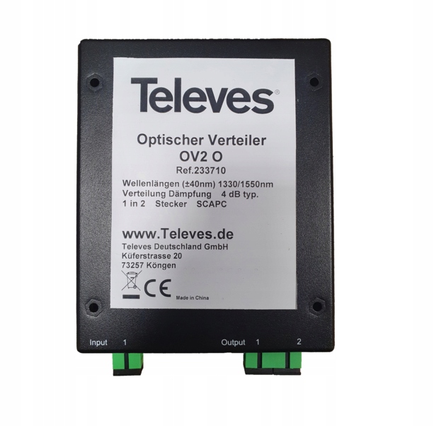 Просматривая «Televes OV2O Optical 2-way splitter connections», вы можете быть уверены, что данный товар из каталога «[rubrica_name]» будет доставлен из Польши и проверен на целостность. В цене товара, указанной на сайте, учтена доставка из Польши. Внимание!!! Товары для Евросоюза, согласно законодательству стран Евросоюза, могут отличаться упаковкой или наполнением.