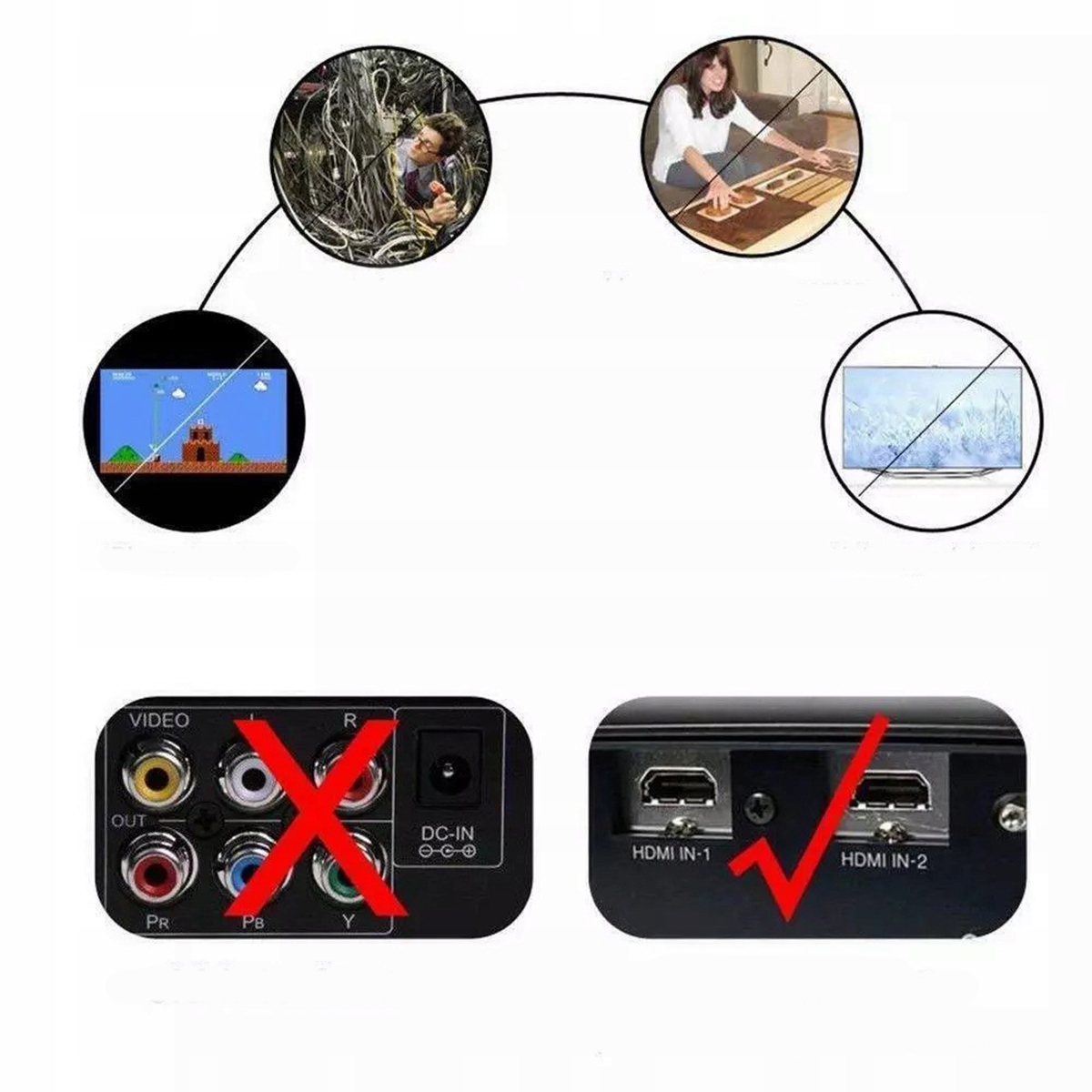 TA Super Retro Mini Classic Gaming Console має вихід HDMI, набагато чіткіший, ніж вихід AV, 4K телевізори (переконайтеся, що монітор або телевізор має порт HDMI). Його компактний дизайн робить його легким і легким для перенесення. Ви можете покласти його в кишеню і взяти всюди.