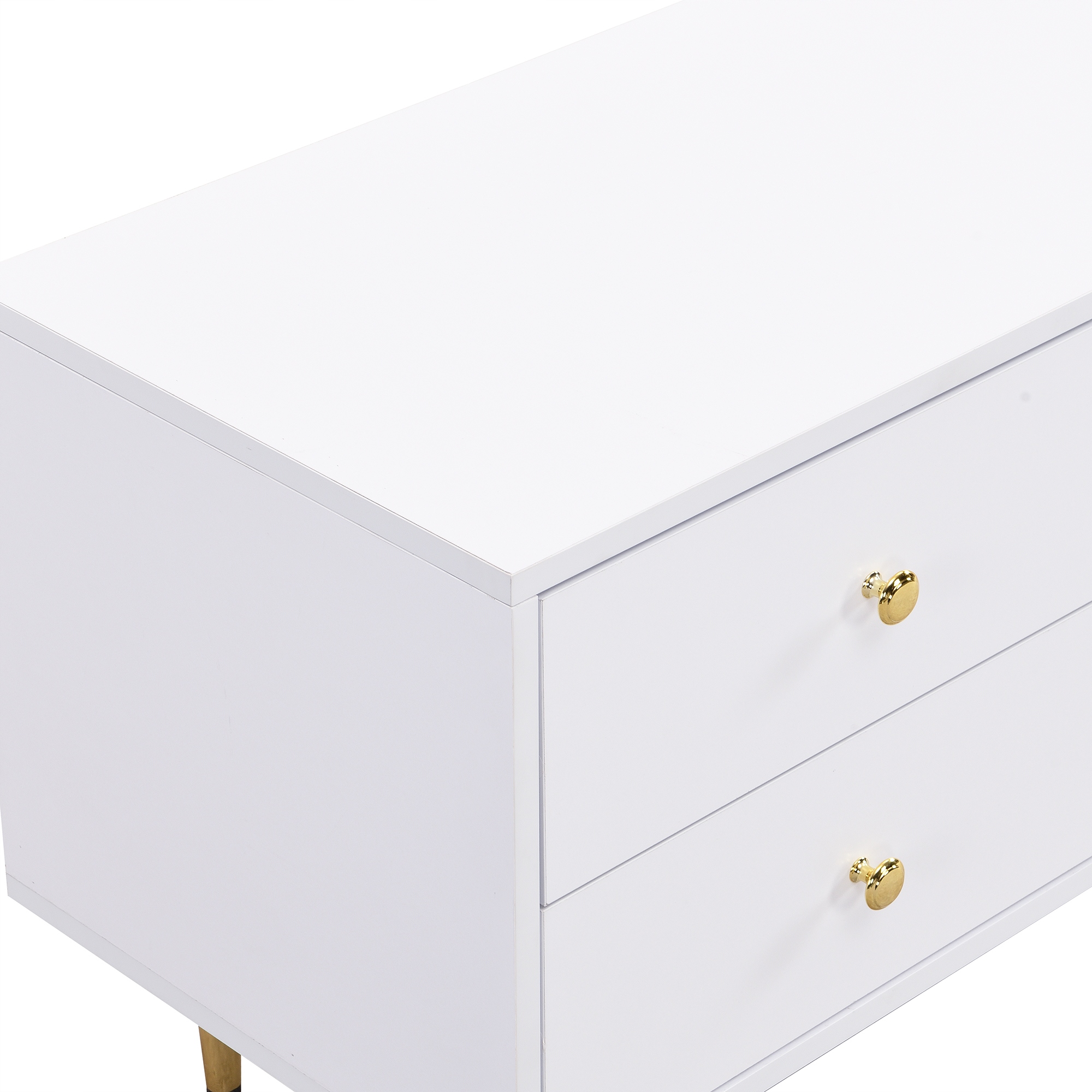 - ТВ -таблиця має просту білу обробку з елегантними, золотими ручками та ногами, які надають йому розкішного та витонченого персонажа. Поєднання білого та золота створює стильний контраст, завдяки якому меблі привертає увагу в кожній вітальні і ідеально вписується в різні стилі меблів.