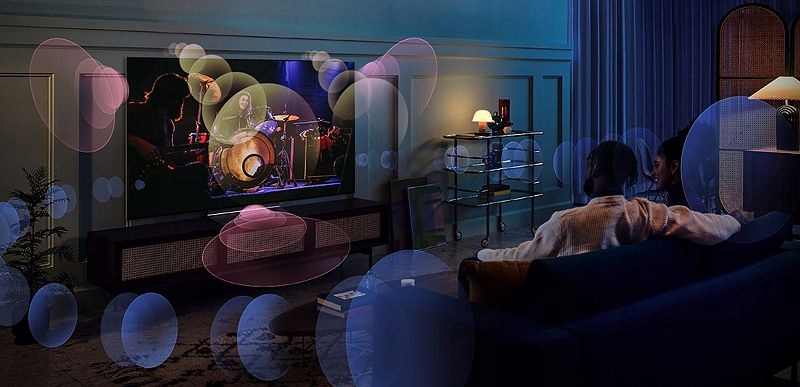 Процесор α9 AI 5-го покоління перетворює 2-канальне аудіо на 7.1 .2- канал. Відчуйте дію з усіма звуками навколо вас, ніби ви перебуваєте прямо в центрі фільму, який переглядаєте.