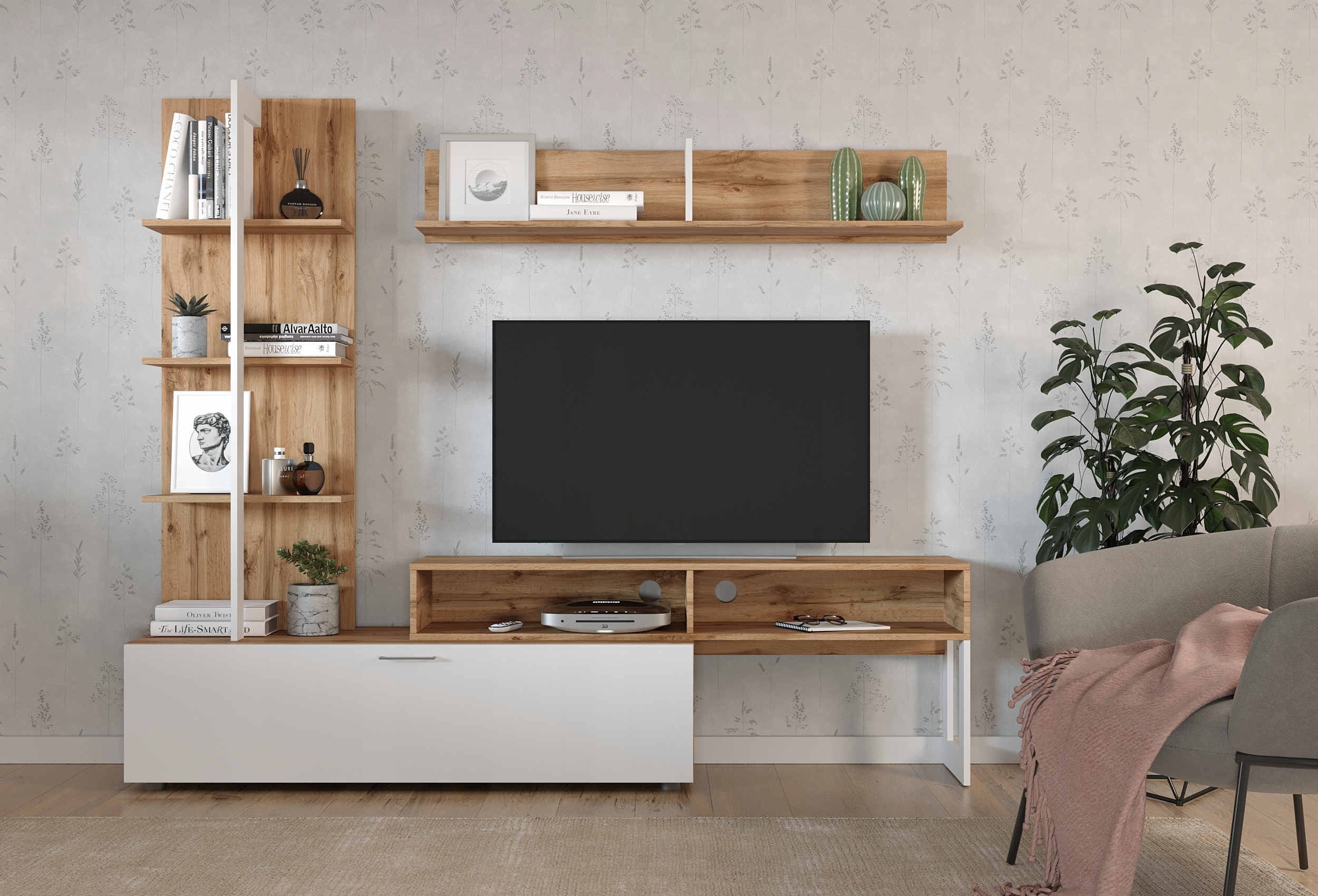 ТЕЛЕВІЗОР НАСТІНКА ПОЛИЦЯ КНИЖКОВА ШАЛФА WOTAN ДУБ/БІЛИЙ ВІТАЛЬНЯ ЮНОНА Meble-Craft