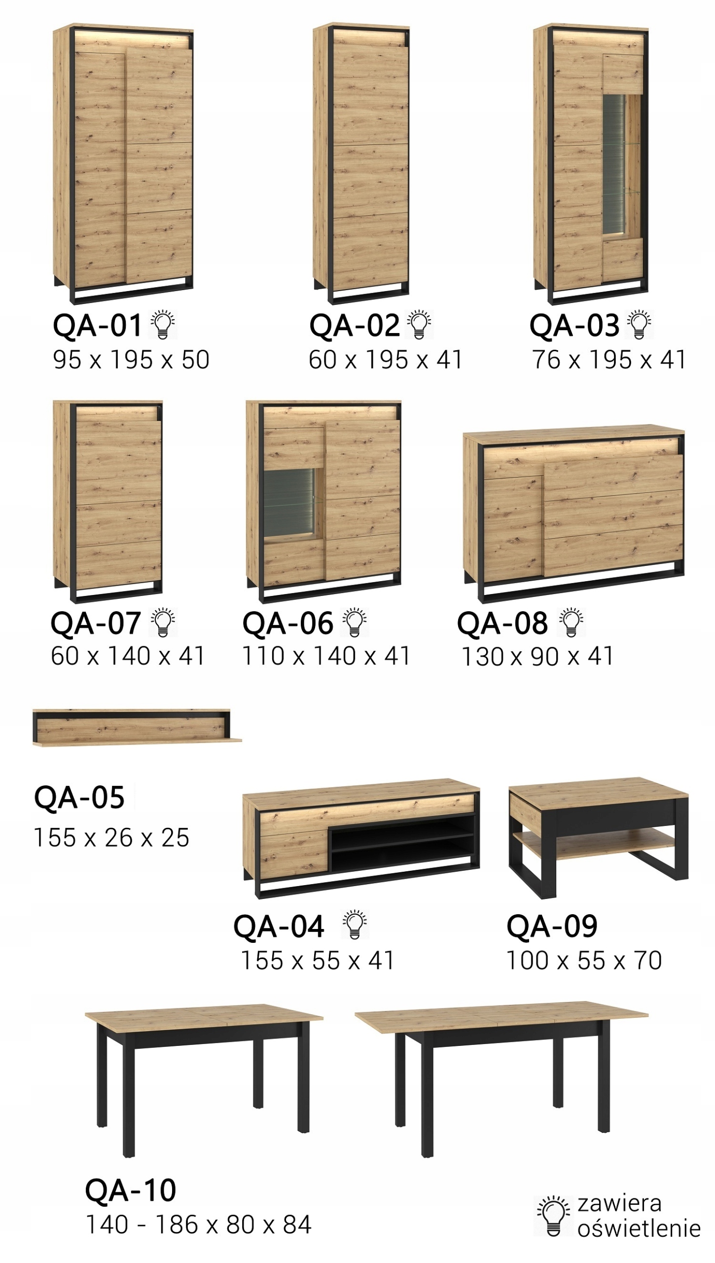 Quant – меблі в стилі лофт. Вони сподобаються всім любителям сучасної елегантності. Просторі, підкреслені світлом фасади та елегантні чорні рами означають, що ці меблі ніколи не будуть фоном, а головною дійовою особою кожної вітальні.