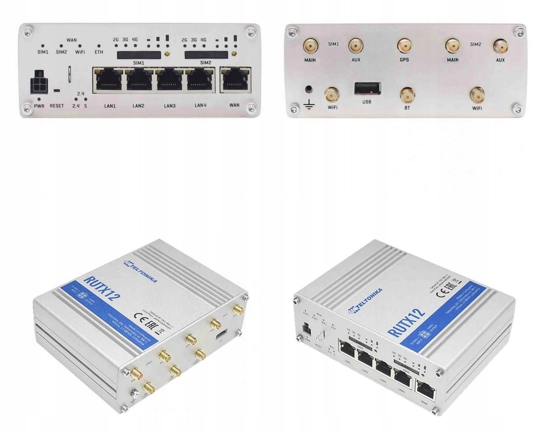 Teltonika RUTX12 — це потужний дводіапазонний бездротовий подвійний маршрутизатор LTE6, дві SIM-карти з технологією Wave-2 802.11ac. Він розроблений для критичних застосувань. Два одночасних модеми LTE6 можуть забезпечувати швидкість до 600 Мбіт/с із балансуванням навантаження.